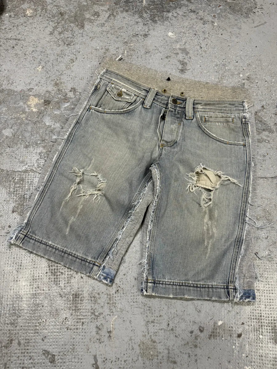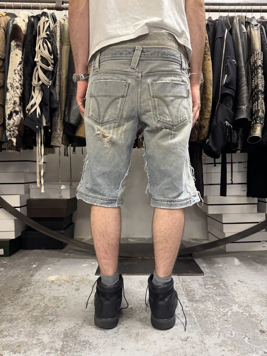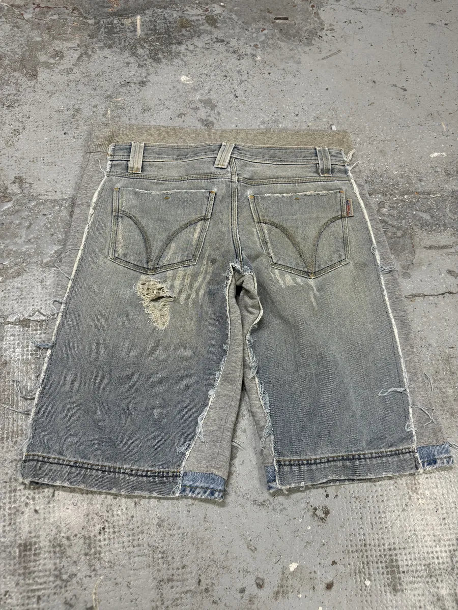 SS2006 Dolce & Gabbana Grey & Blue Hybrid Distressed Denim Shorts