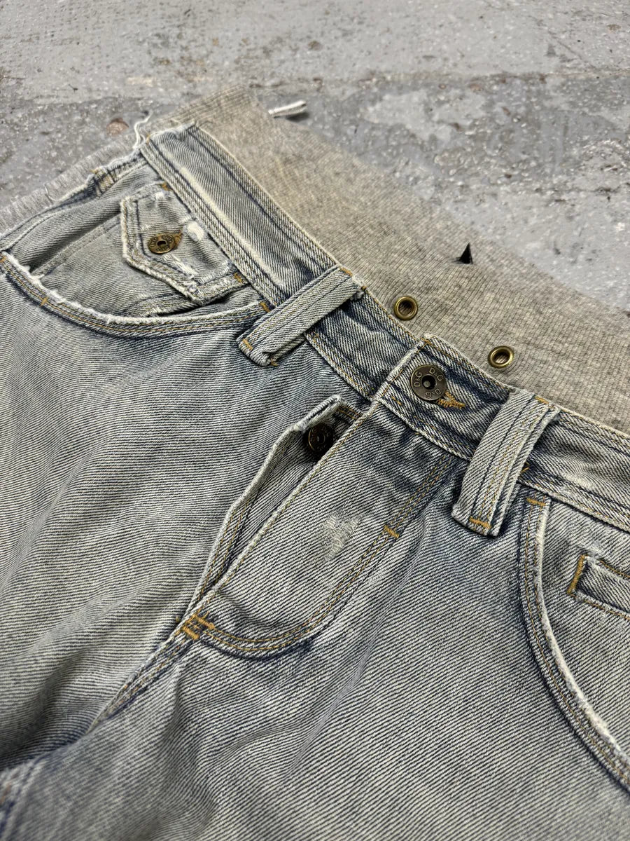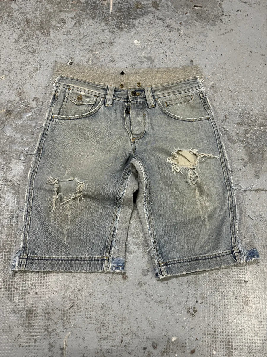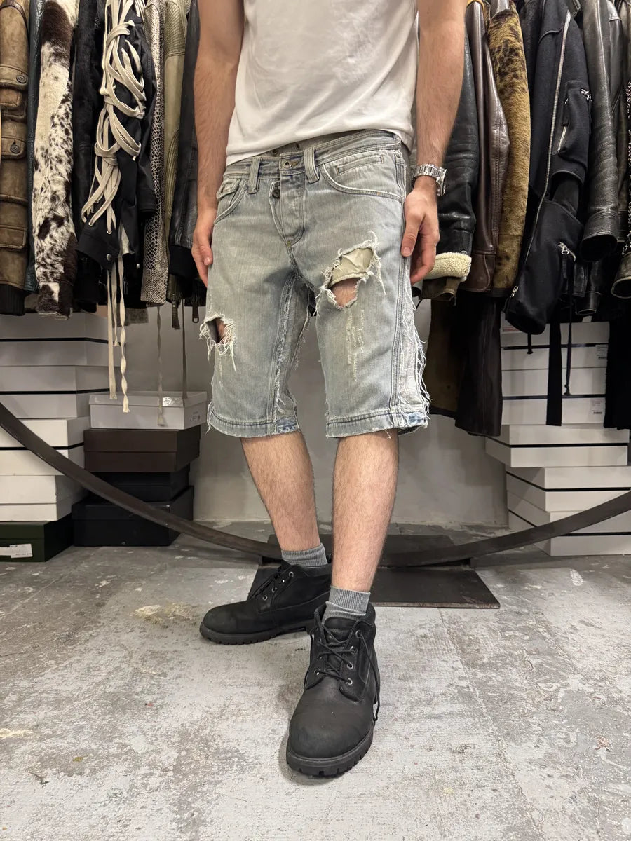 SS2006 Dolce & Gabbana Grey & Blue Hybrid Distressed Denim Shorts