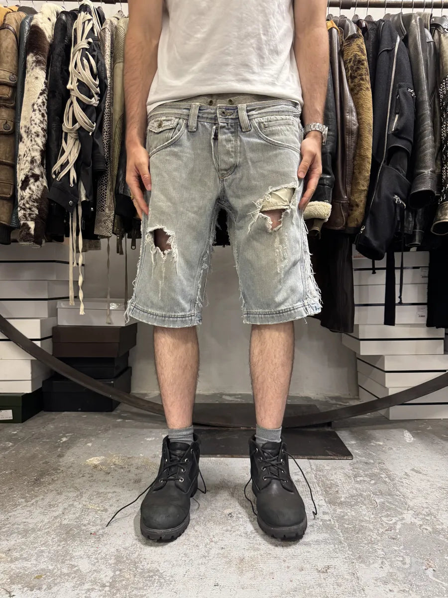 2000s Dolce & Gabbana Blue Distressed Denim Shorts -