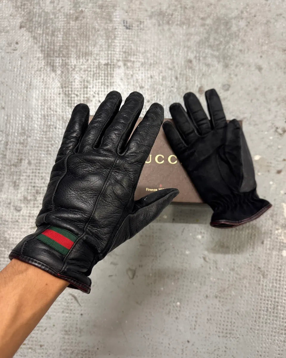 • 1990s Gucci Brown Leather 2-in-1 Mitten Gloves
