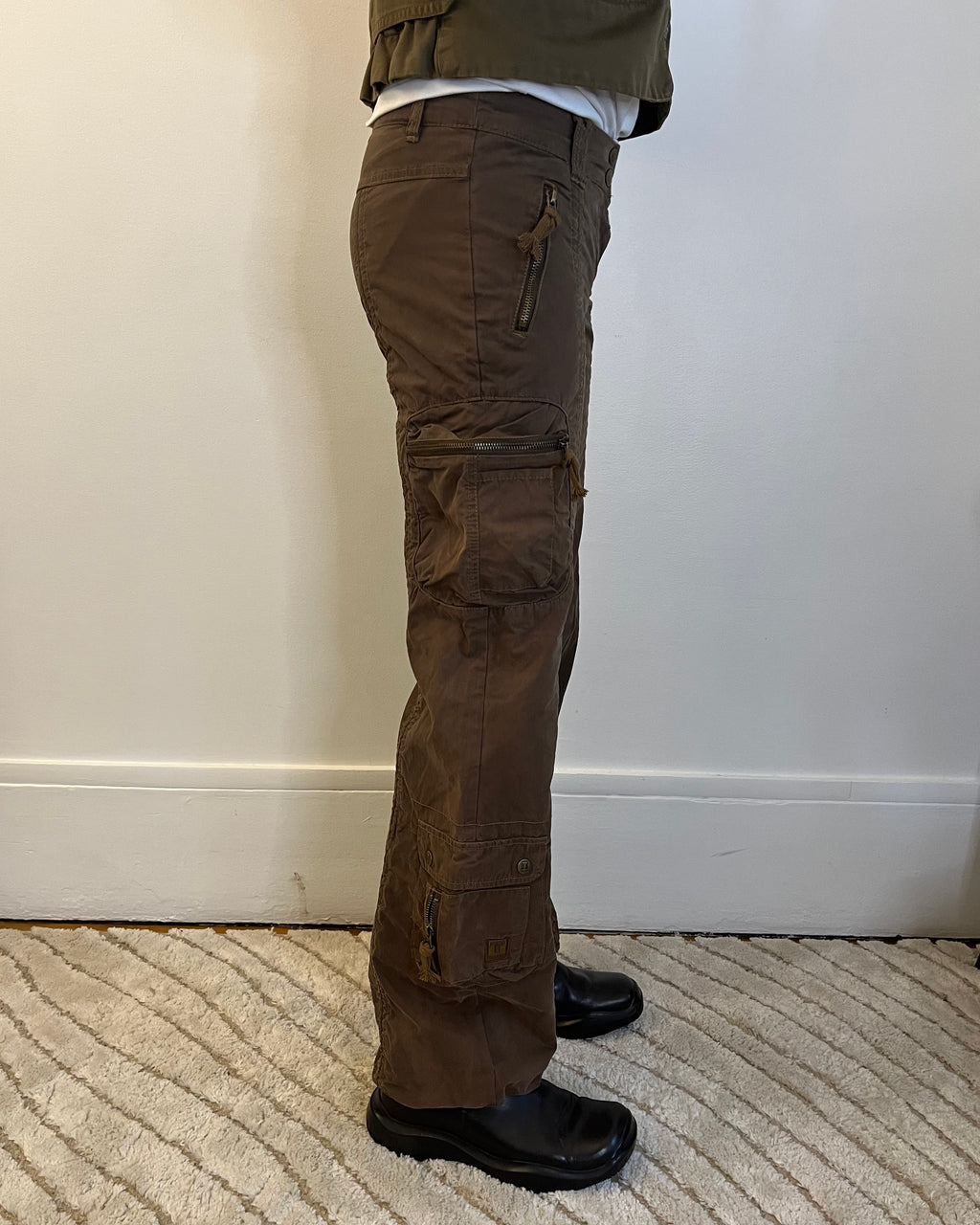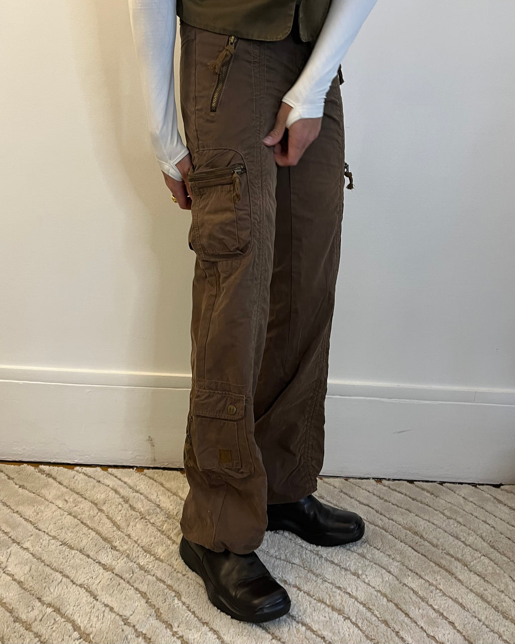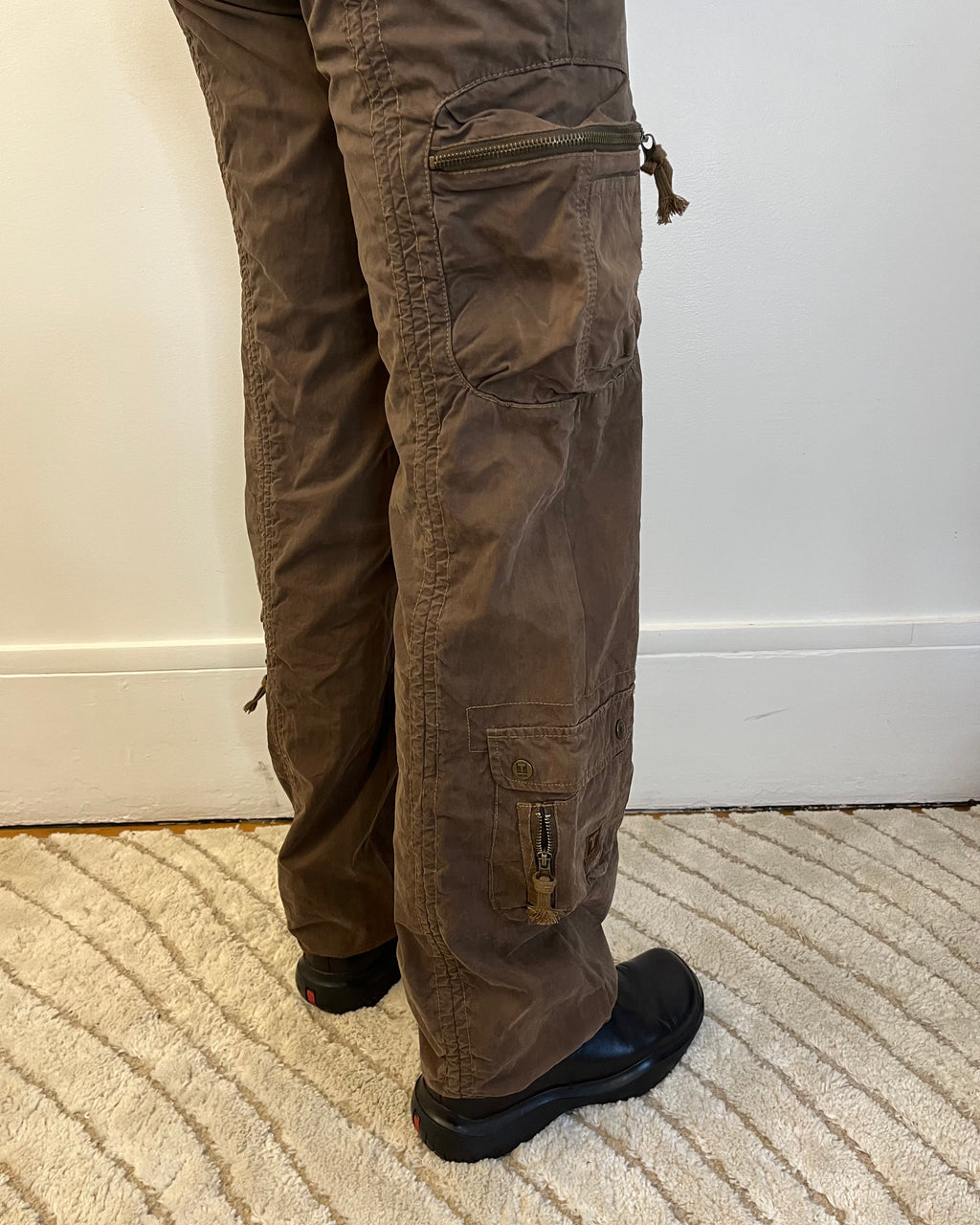 Extremely comfortable parachute pants for those who want to be comfortable. These pants remind us of the eternal debate: does the brand name really matter when it comes to buying a garment with no apparent brand and from good materials. The answer may seem obvious to many, and for many reasons. This item is perhaps a good counter-example, proving that any brand can manage to make great products, almost unintentionally or without understanding its success. Some parts are a little faded but the pants are still in good condition. Flexible leg opening, fits great on someone skinny. PLEASE REFER TO MEASUREMENTS Outseam - 102cm Waist - 35 cm Thigh - 24cm Leg Opening - 20cm