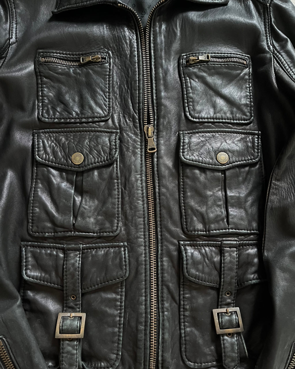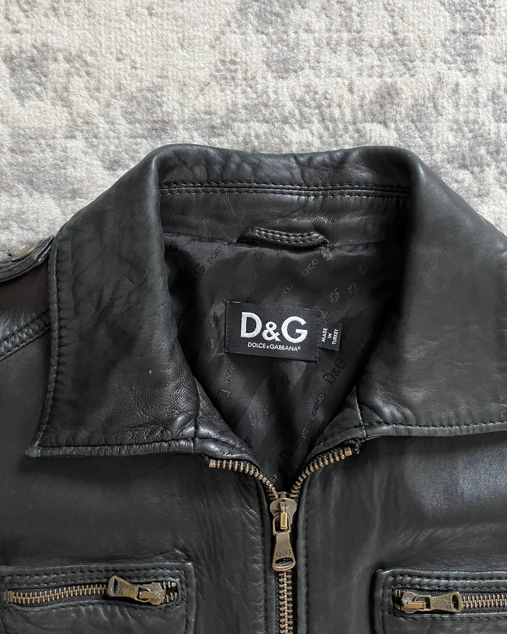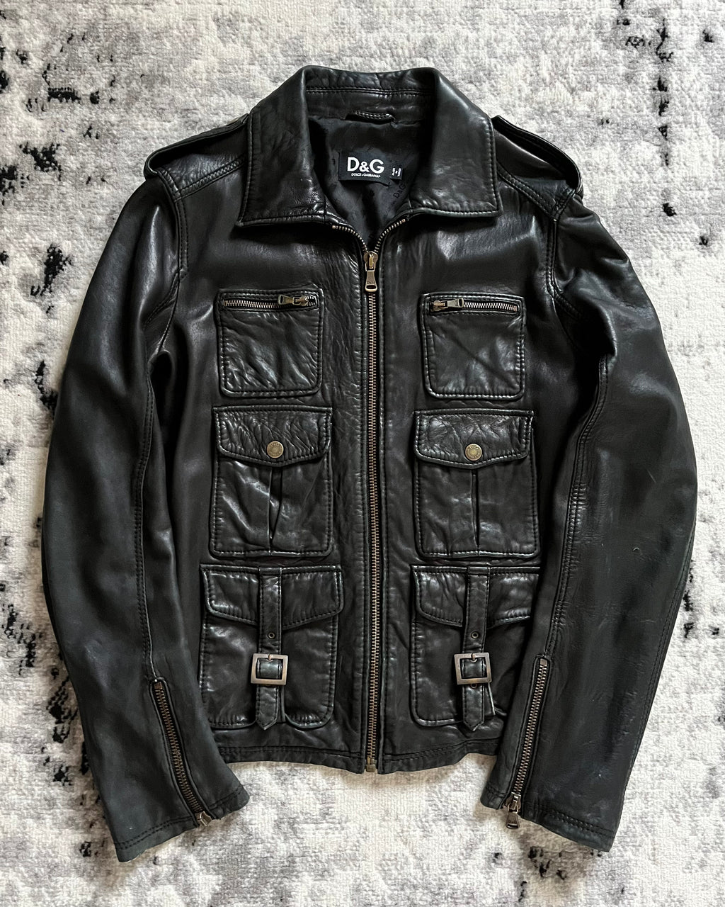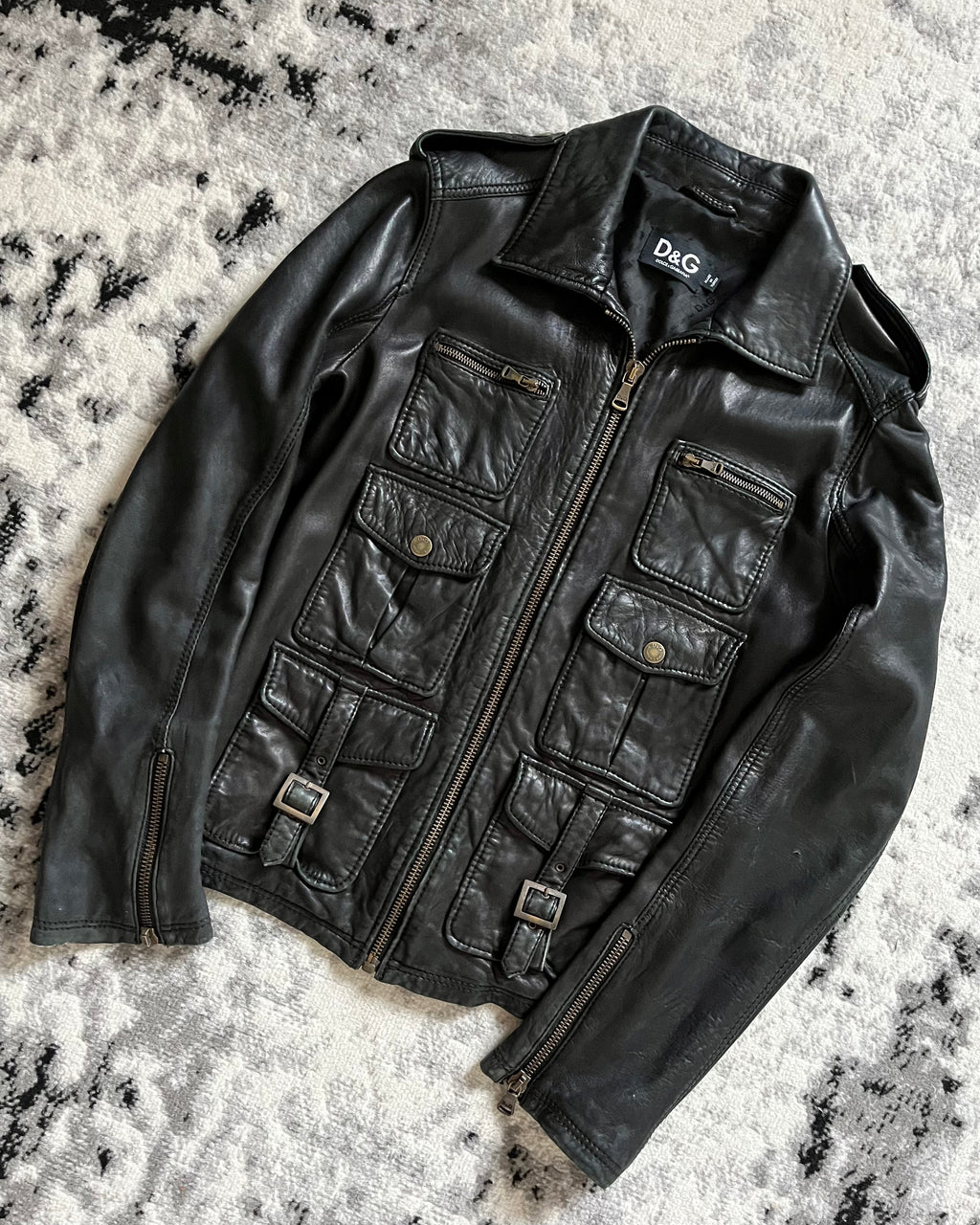 00s Dolce & Gabbana Black Rebel Utility Leather Jacket (M)