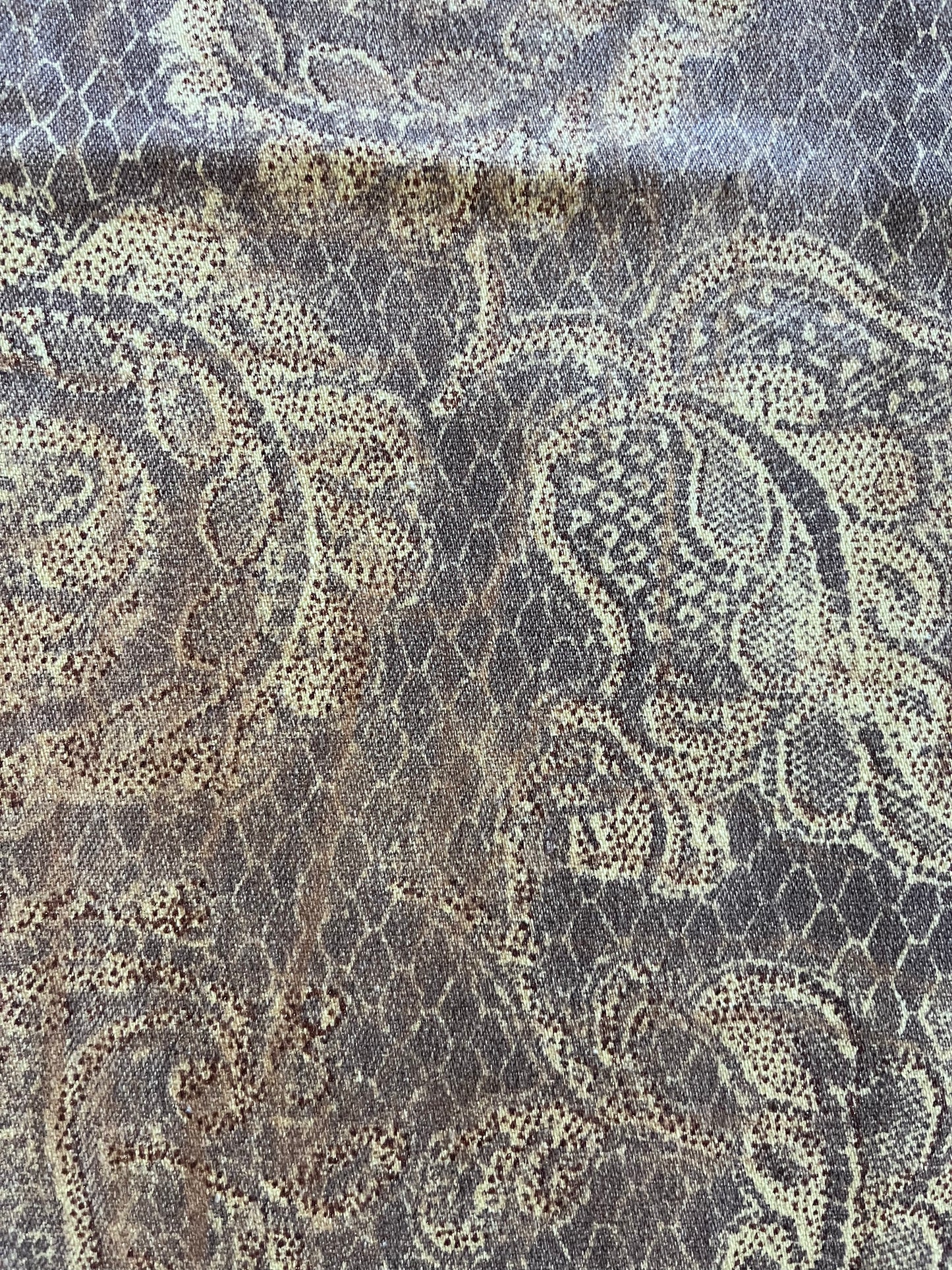 The Just Cavalli Royal Arabic Mozaic Gold Dynasty Pants from the 2000s are a majestic fusion of style and cultural influence. Inspired by the rich aesthetics of Arabic mozaic and the opulence of dynastic eras, these pants are a statement of regal grandeur. Crafted under the Just Cavalli label, known for its bold and artistic designs, these pants reflect the brands commitment to pushing the boundaries of fashion. Still in excellent condition. Please refer to measurements: Waist - 35cm, Leg Opening - 19.5cm, Length - 105cm.