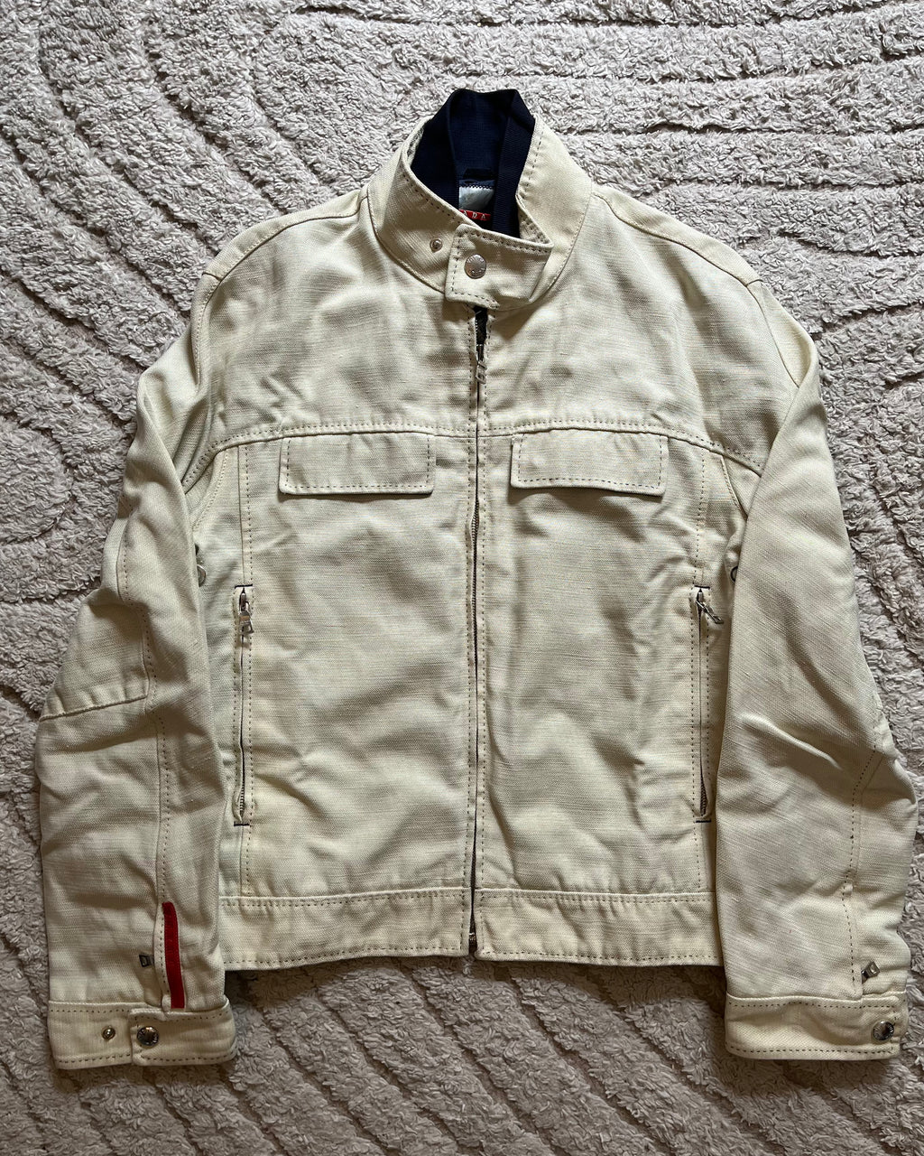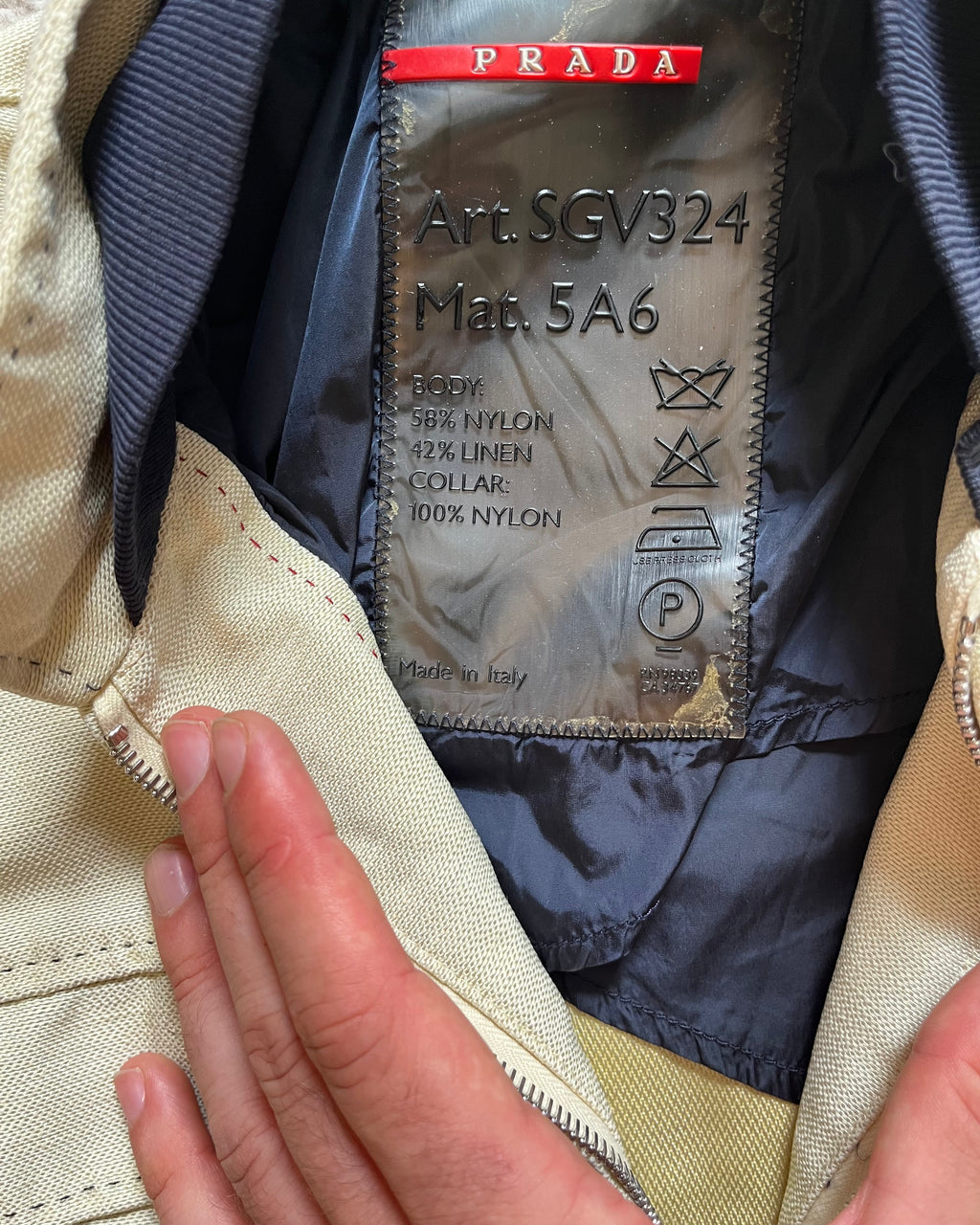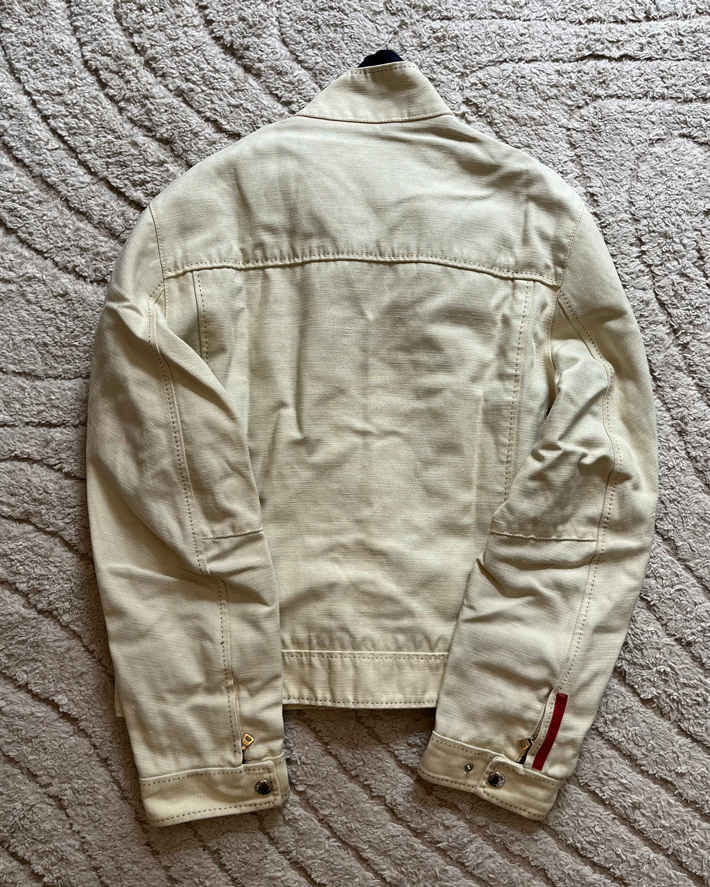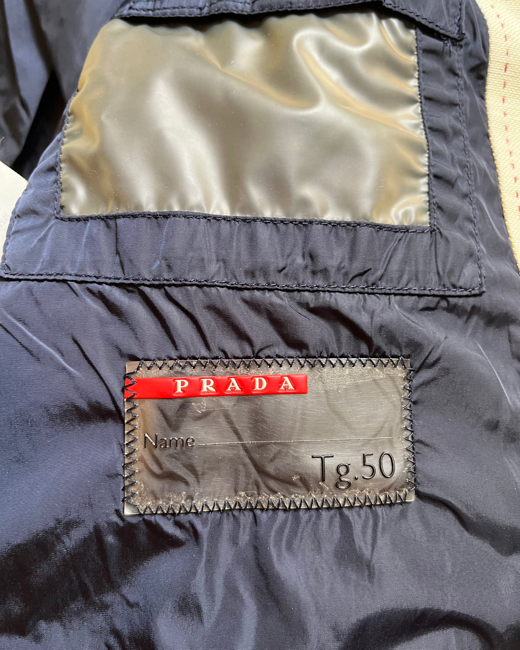 The Linea Rossa insignia, a symbol of Prada's sporty and innovative spirit, adds a touch of authenticity to the jacket, evoking a sense of nostalgia and reverence for the brand's iconic designs from the 00s.