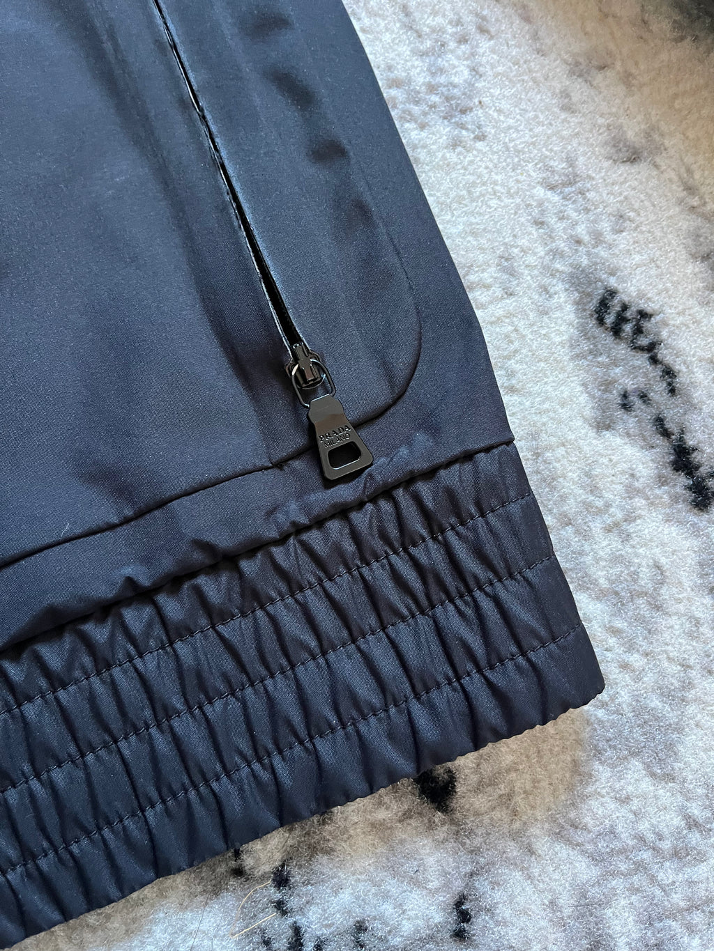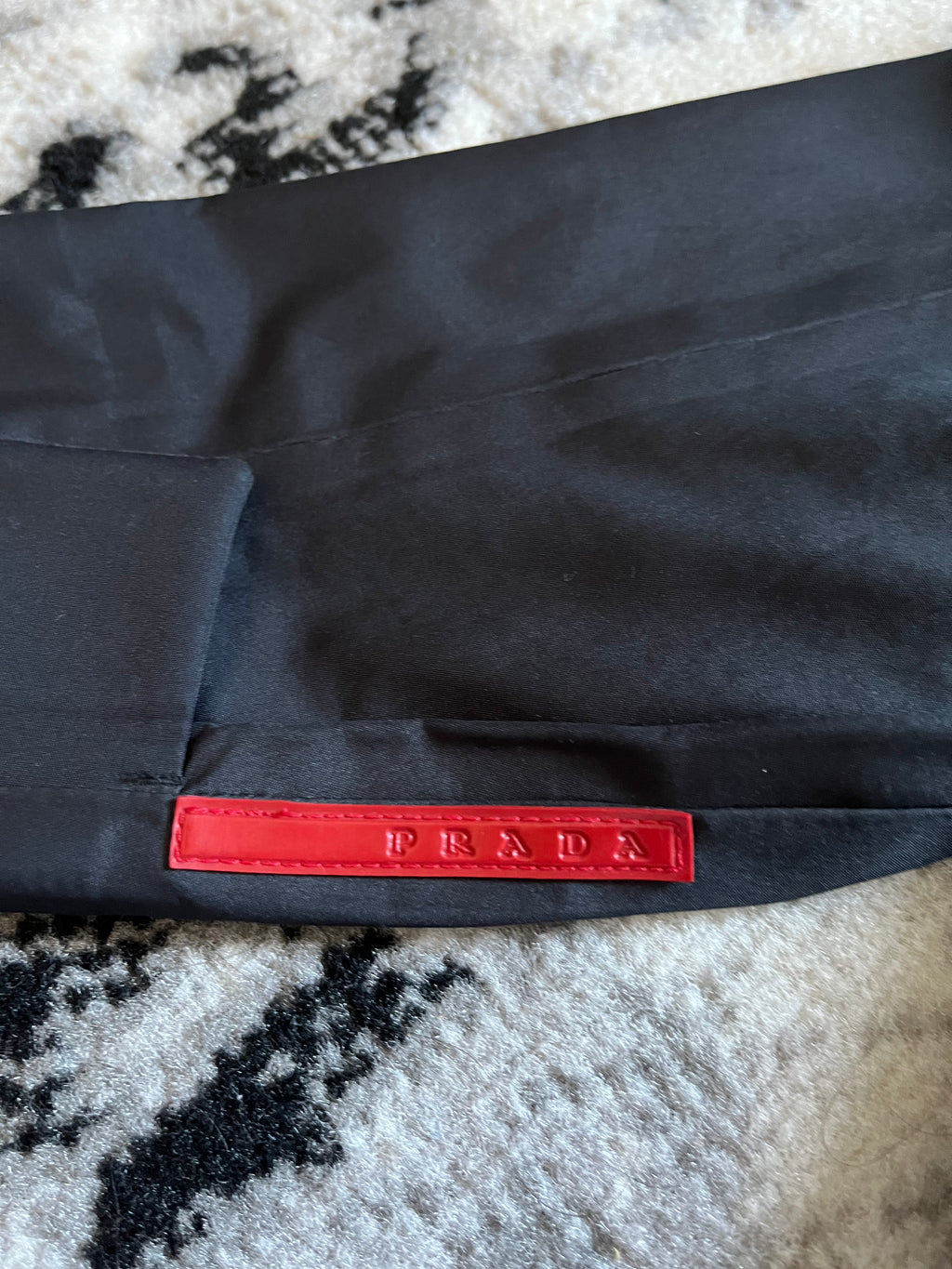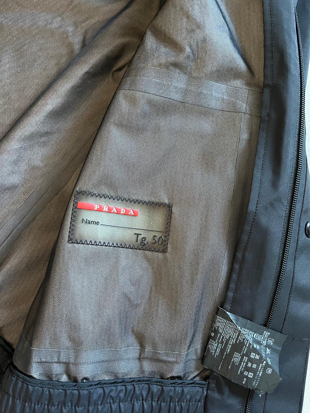 Crafted in soft black 100% polyester fabric, this jacket ensures comfort and ease of movement during your urban adventures. Crafted under the Prada Linea Rossa label, known for its fusion of sportswear and high fashion, this jacket reflects the brand's commitment to innovation and quality.