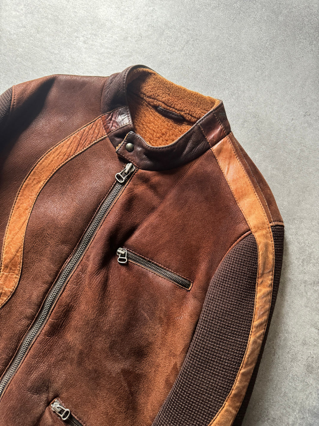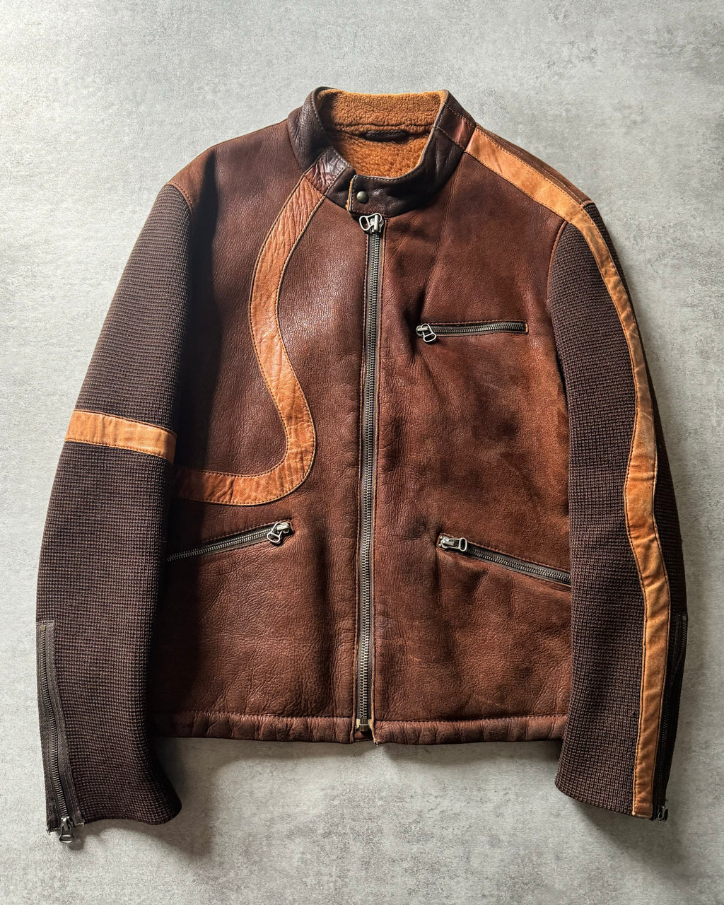 1980s Hugo Boss Brown Hybride Racing Leather Jacket