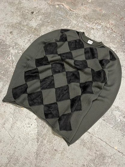 The 1990s Armani Collezioni Olive Squared Wool Sweater emanates timeless sophistication and refined elegance. Crafted from high-quality wool, its rich olive hue beautifully complements any wardrobe. The unique squared design and ribbed detailing provide a contemporary twist on classic knitwear, showcasing a vintage charm. In good condition. Marked size 54 IT. Fits men L. Model is 182cm.