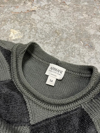 1990s Armani Collezioni Olive Squared Wool Sweater