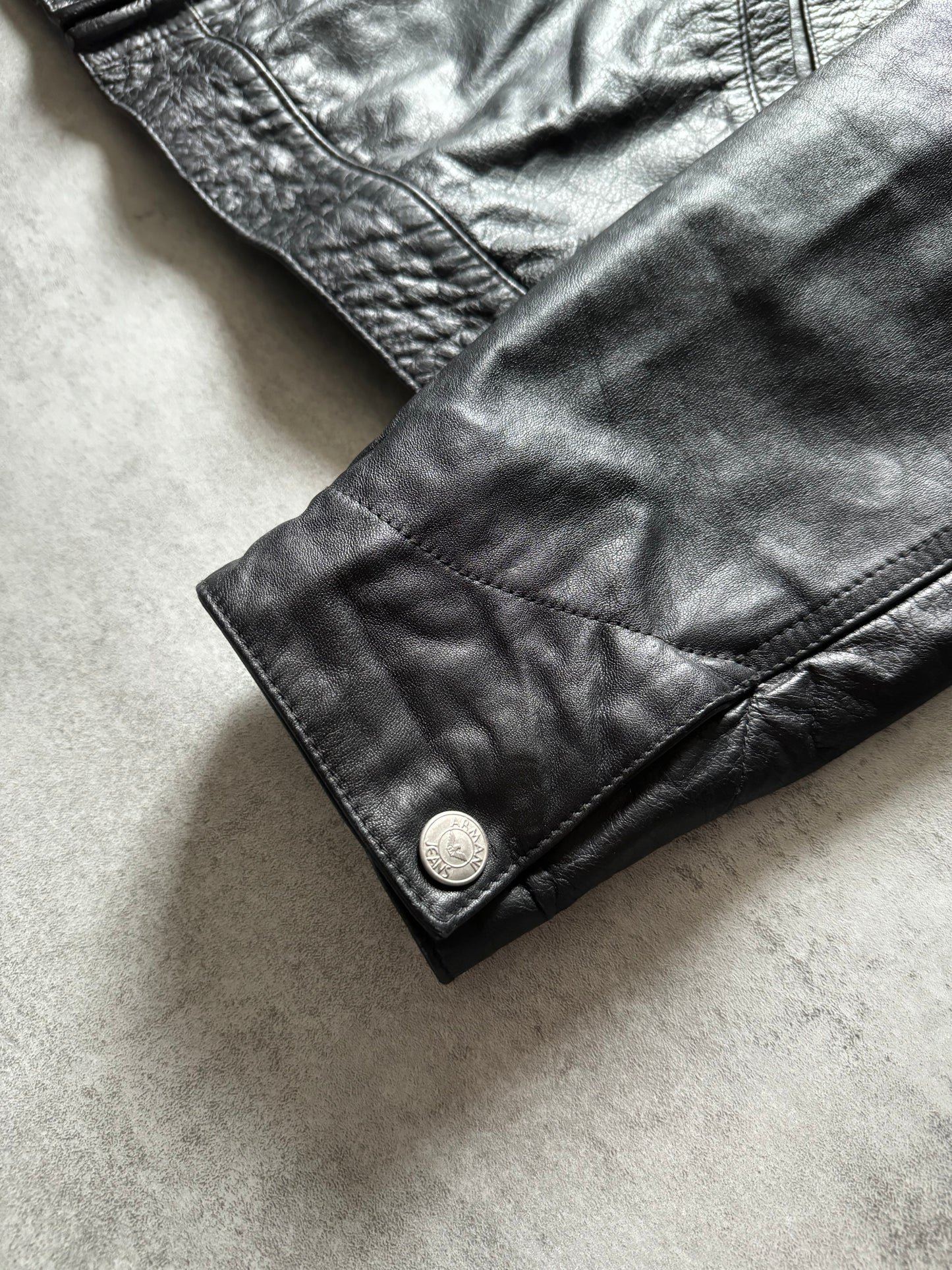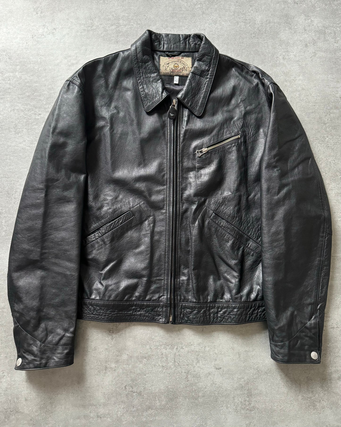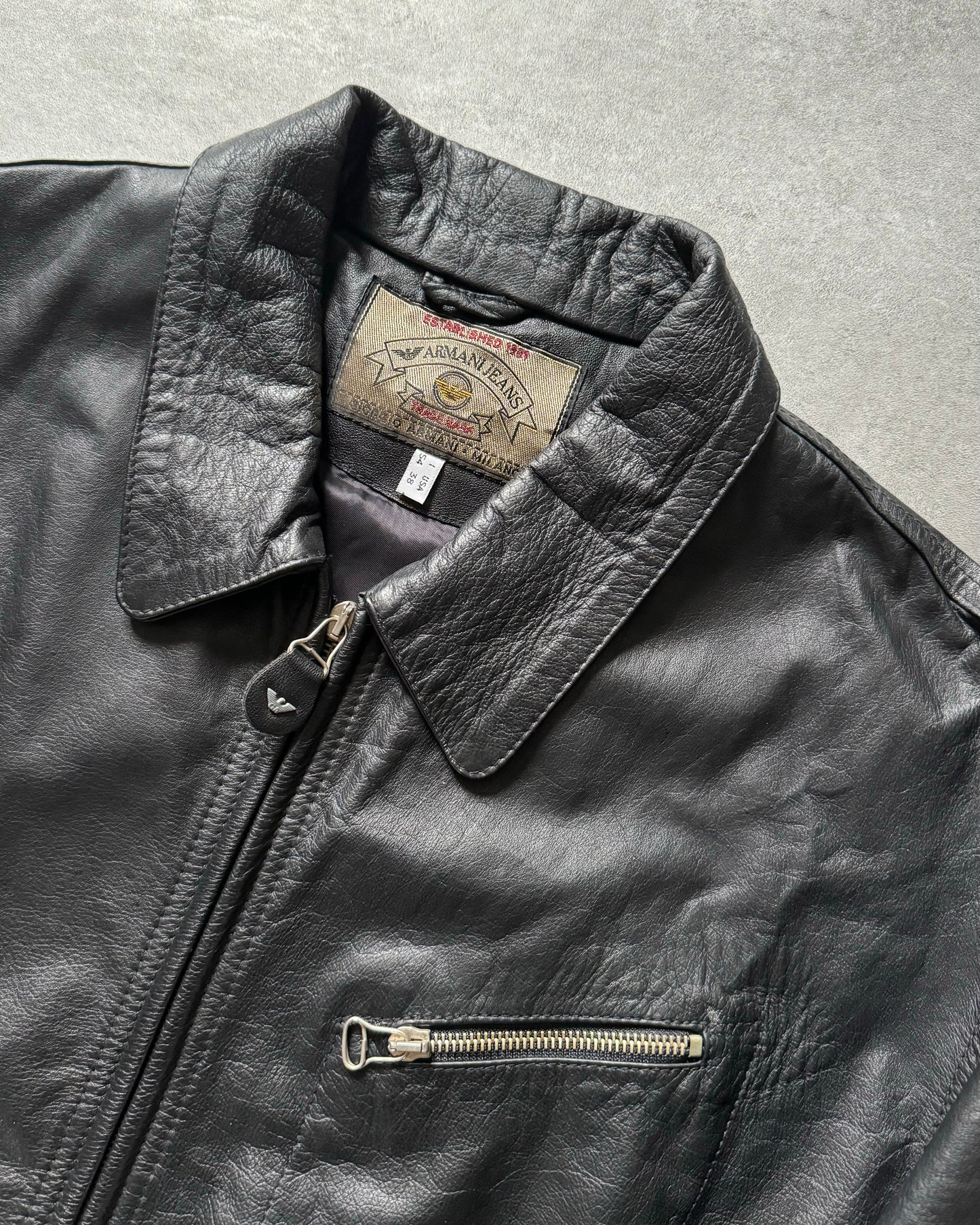 1990s Armani Pragmatic Black Leather Jacket (L)