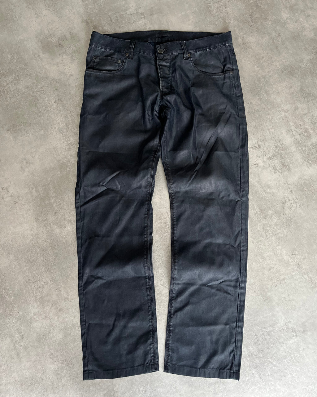 Like Dior in the early 2000s, these waxed-effect pants are absolutely superb, dressing up any outfit. The pop-rock effect is just great. Still in a great condition