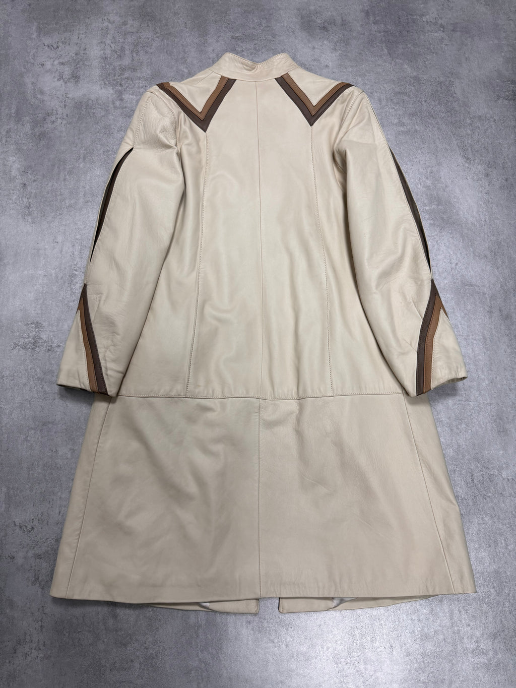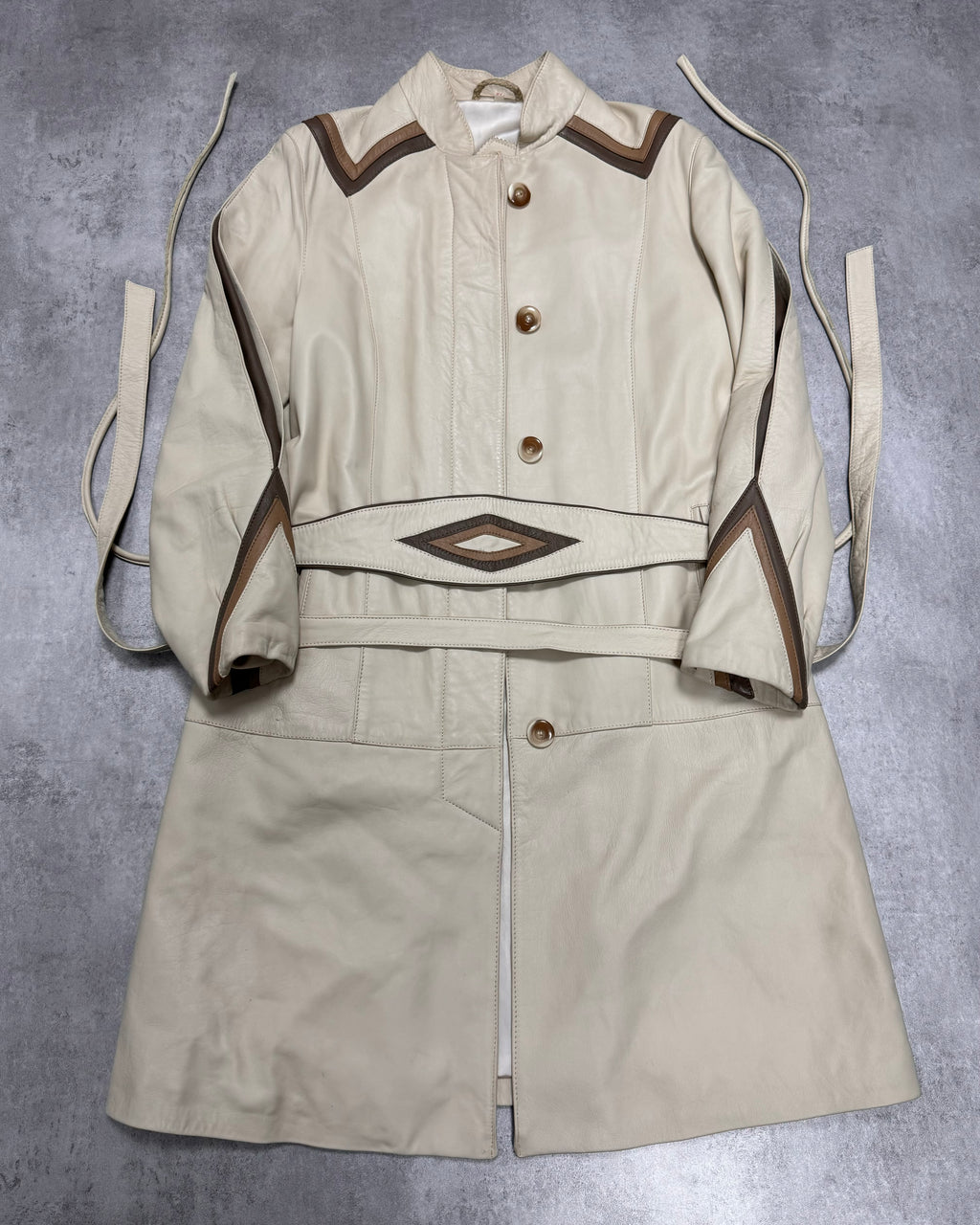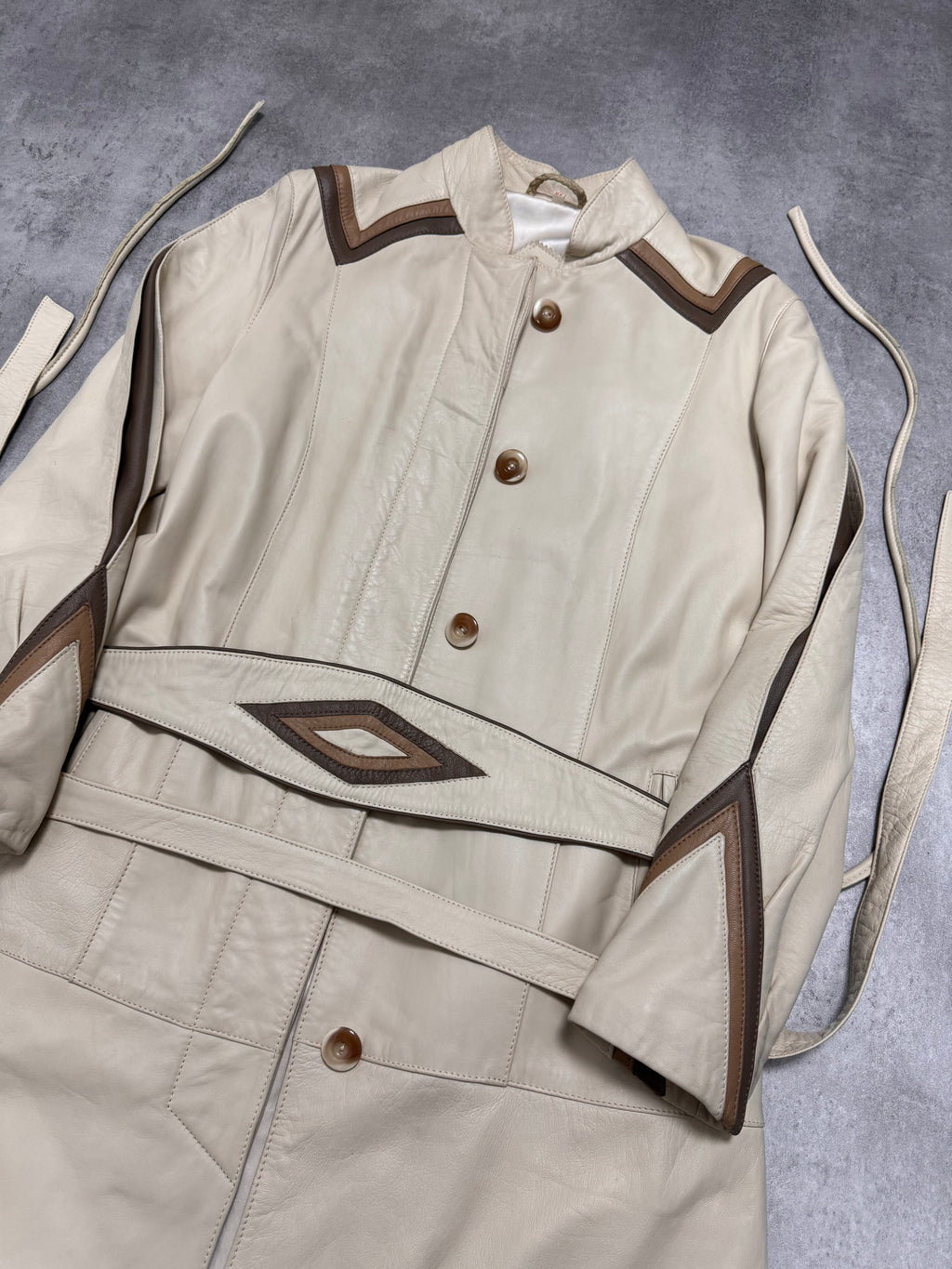1990s Vintage Sand Leather Trench Coat
