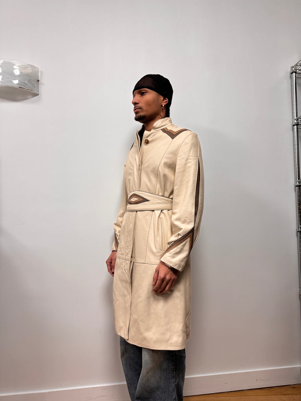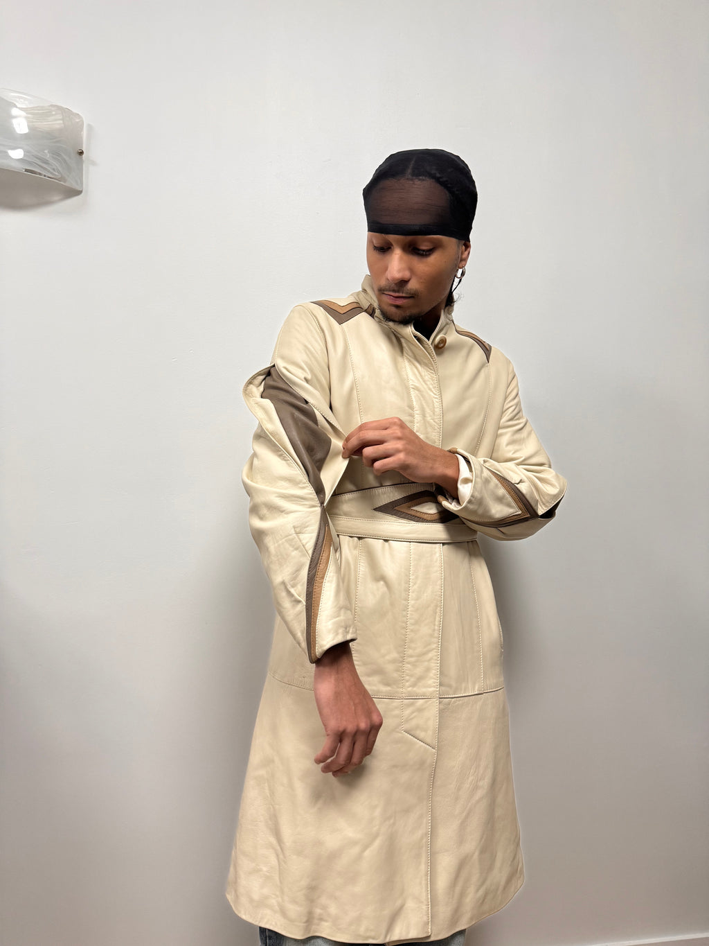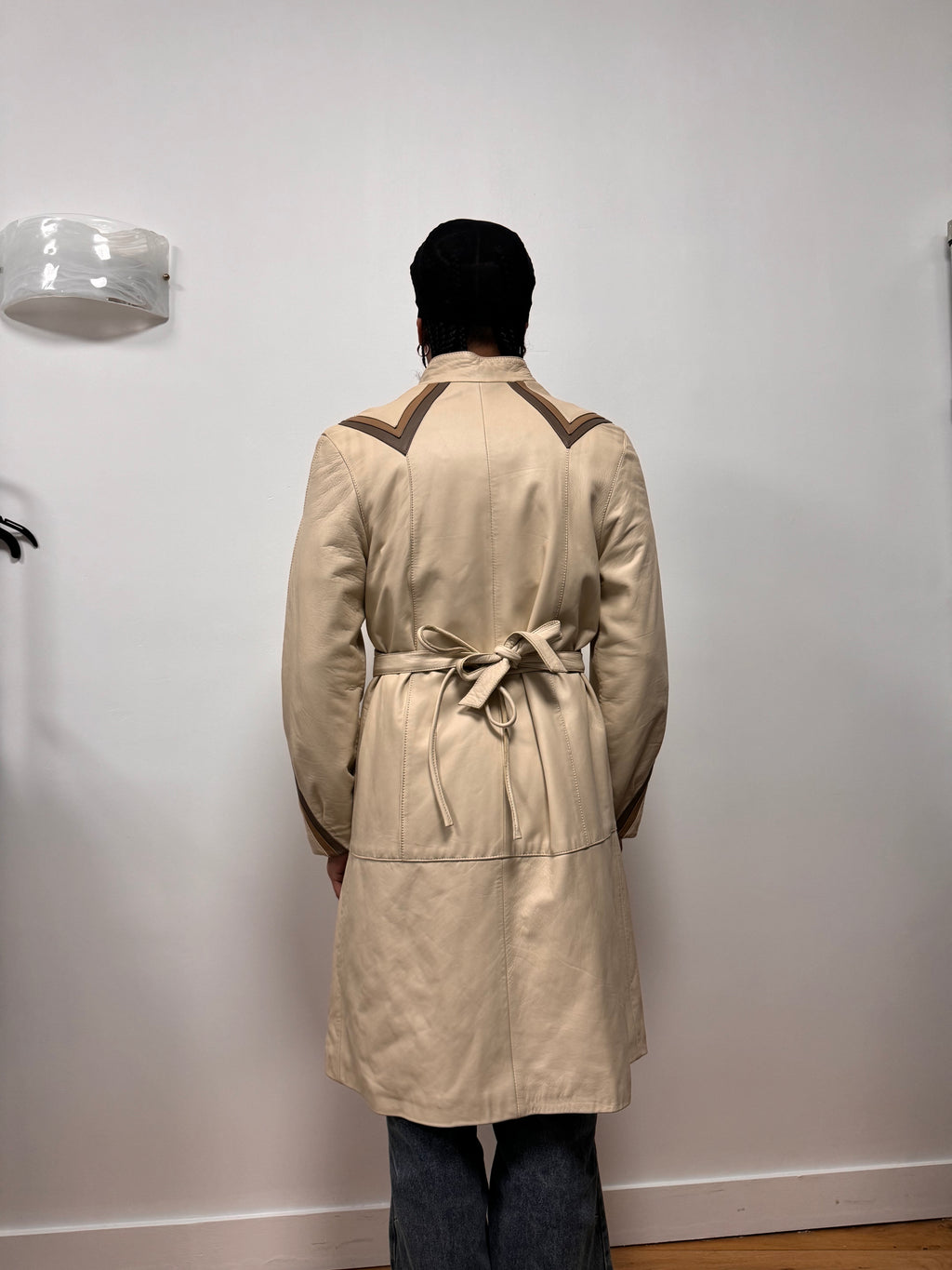 1990s Vintage Sand Leather Trench Coat