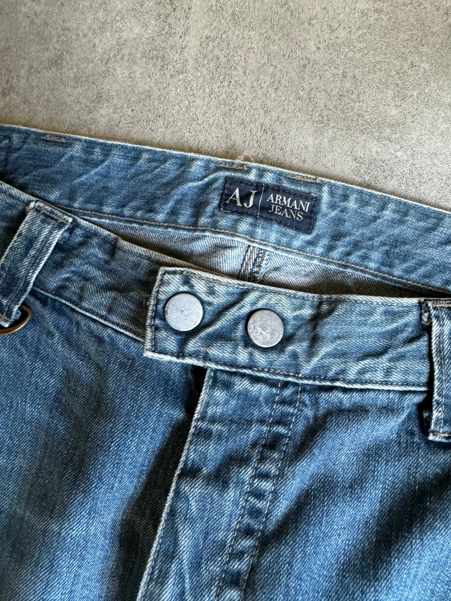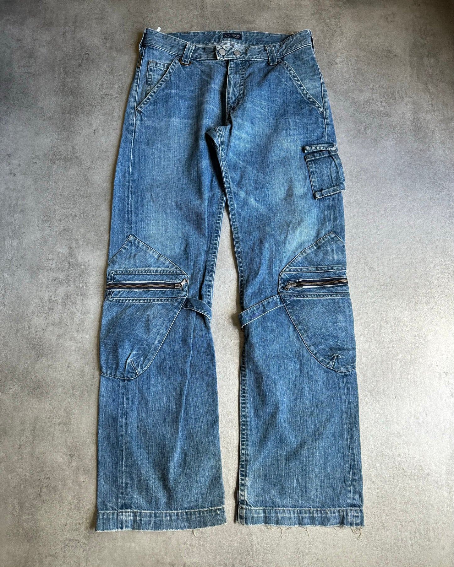 The 2000s Armani Bondage Cargo Denim Jeans are a distinctive and edgy piece from the early 2000s, representing a unique fusion of high fashion and streetwear influences that characterized many designers' work during that era. Armani, known for its classic and sophisticated designs, ventured into more experimental territory with this collection, reflecting the trends and cultural shifts of the time. Still in a great overall condition, the signs of use at the back add charm. Fits like a size 32, perfect for someone rather tall.
