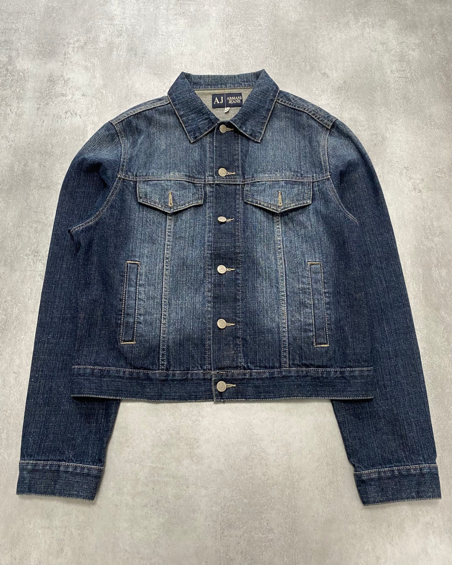 Perfect daily denim jacket from the Armani 2000s. Hand-measured with the garment laid flat.