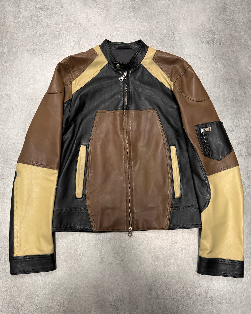 2000s Daniele Alessandrini Biker Tricolour Leather Jacket