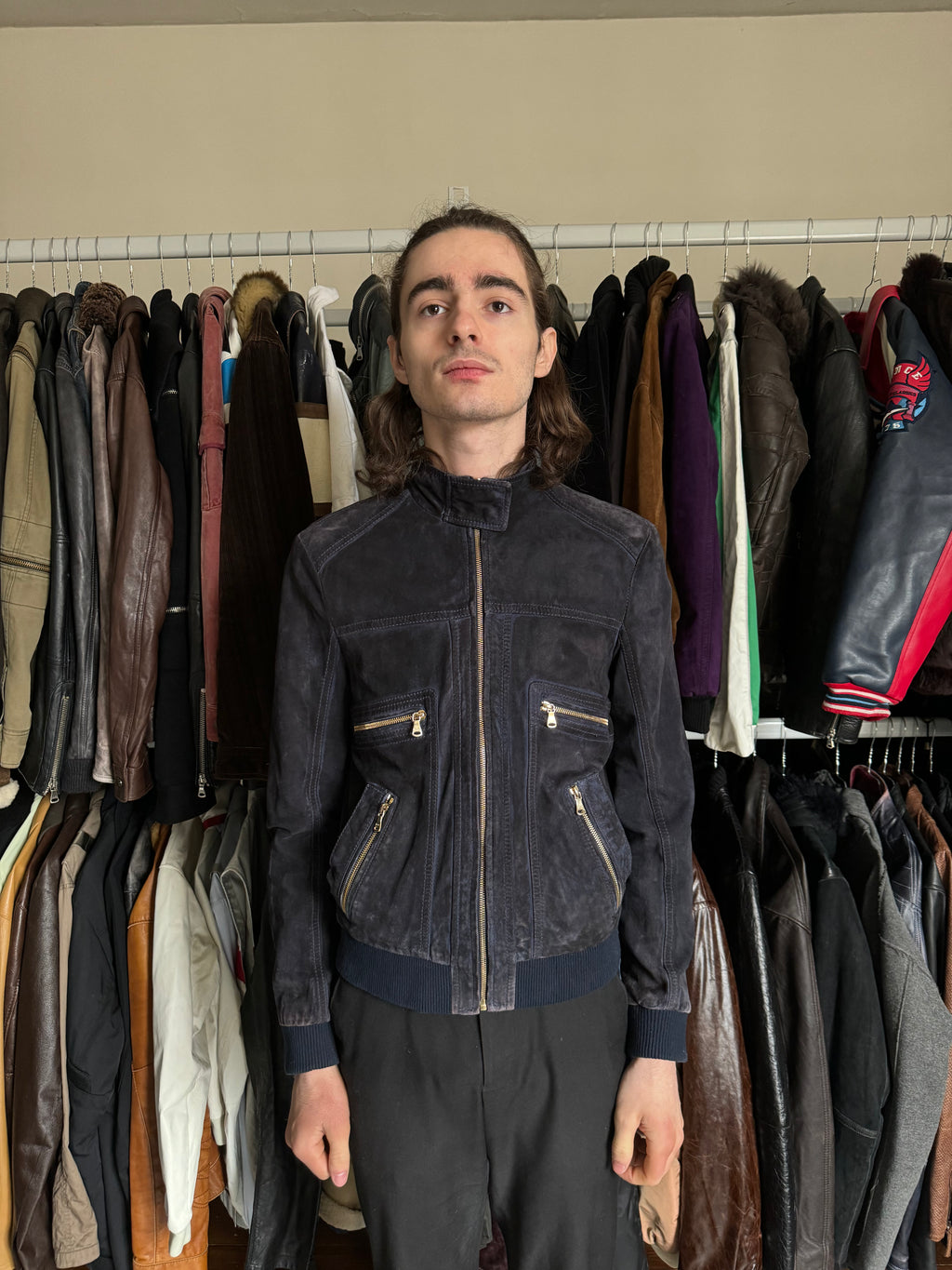 Featuring a tailored fit and impeccable craftsmanship, this jacket offers both style and functionality. The rich navy hue adds a modern twist to the timeless biker silhouette, making it a versatile piece that can be dressed up or down for any occasion. Worn but still in a great overall condition. Model is 180cm for 65kgs. Marked as size 46 (Small).