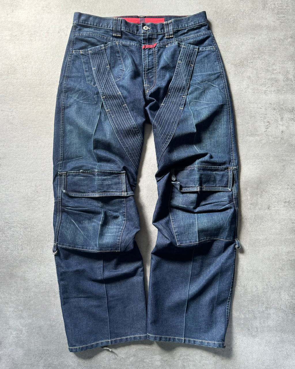 2000s Marithé + François Girbaud Blue Worker Cargo Denim Jeans (L)