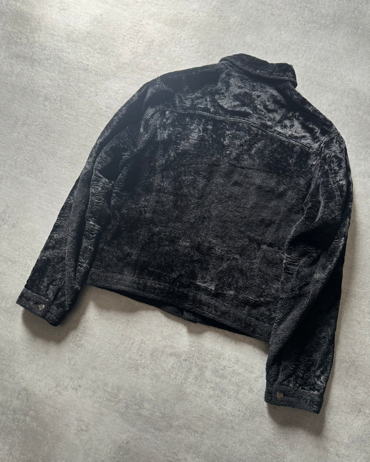 Constructed from a cozy rug-like fabric in classic black, this jacket offers both warmth and style. The trucker jacket silhouette adds a touch of Americana-inspired flair, while the plush texture provides a unique twist on a timeless classic. The vest feels so good to the touch, it's quite exceptional.