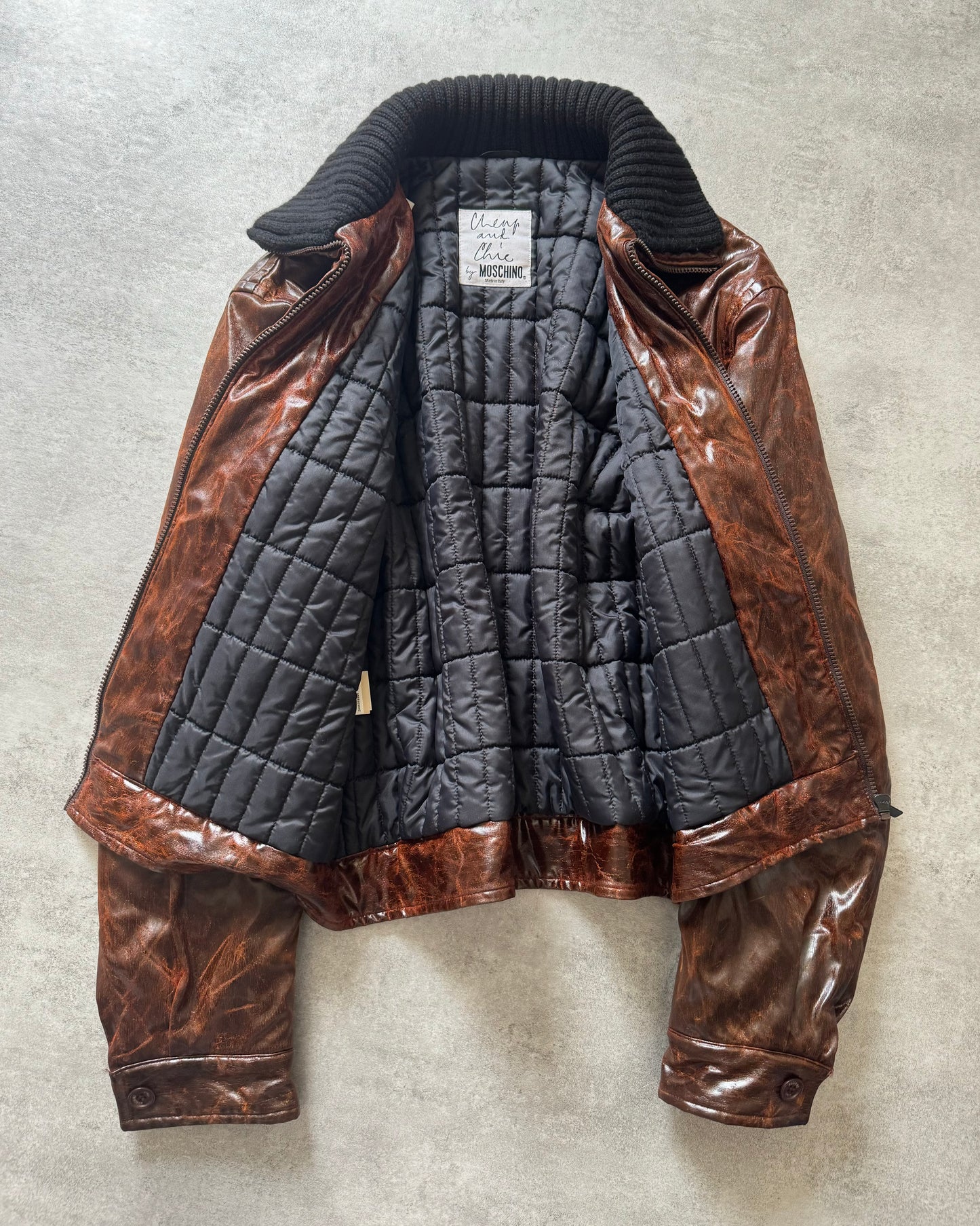 2000s Moschino Enigmatic Brown Eroded Bomber Jacket