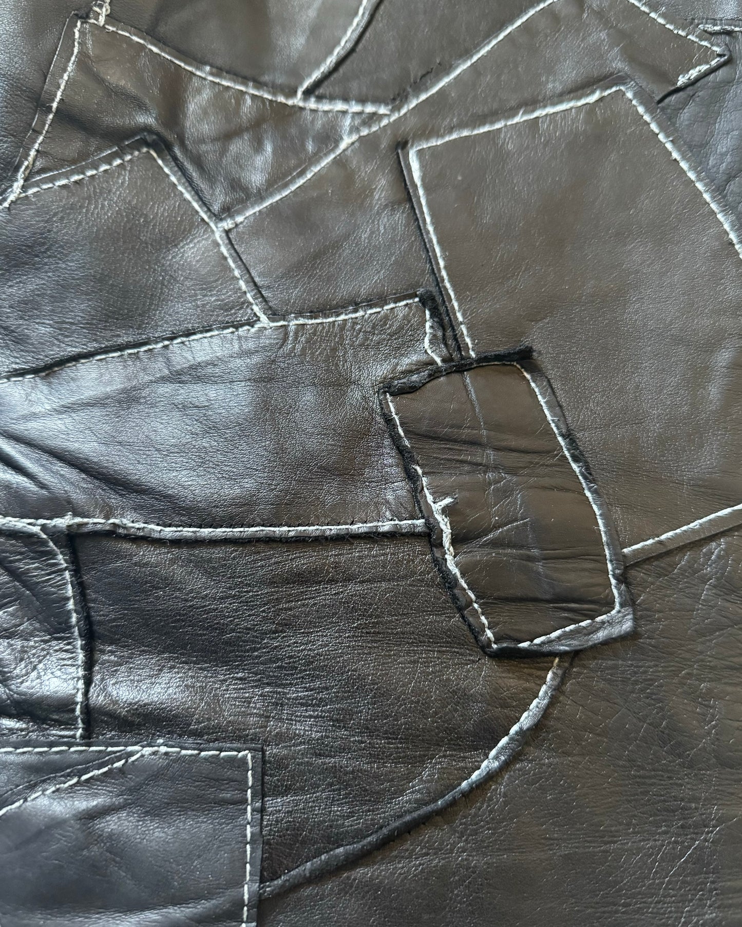 The 2000s Plein Sud Black Leather Patchwork Pants are a striking example of French craftsmanship and avant-garde design. Crafted with meticulous attention to detail, these pants boast a luxurious combination of premium leather patches meticulously stitched together to create a unique patchwork pattern. Each patch of supple black leather adds depth and texture to the pants, while the straight cut silhouette ensures a sleek and sophisticated look. Made in France, these pants are a testament to the country's rich tradition of high-quality fashion and design. Rare item