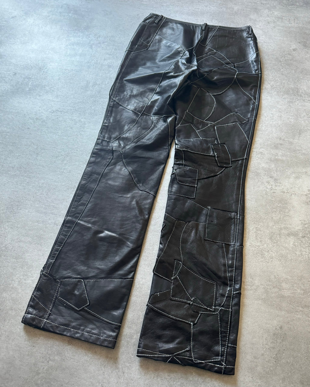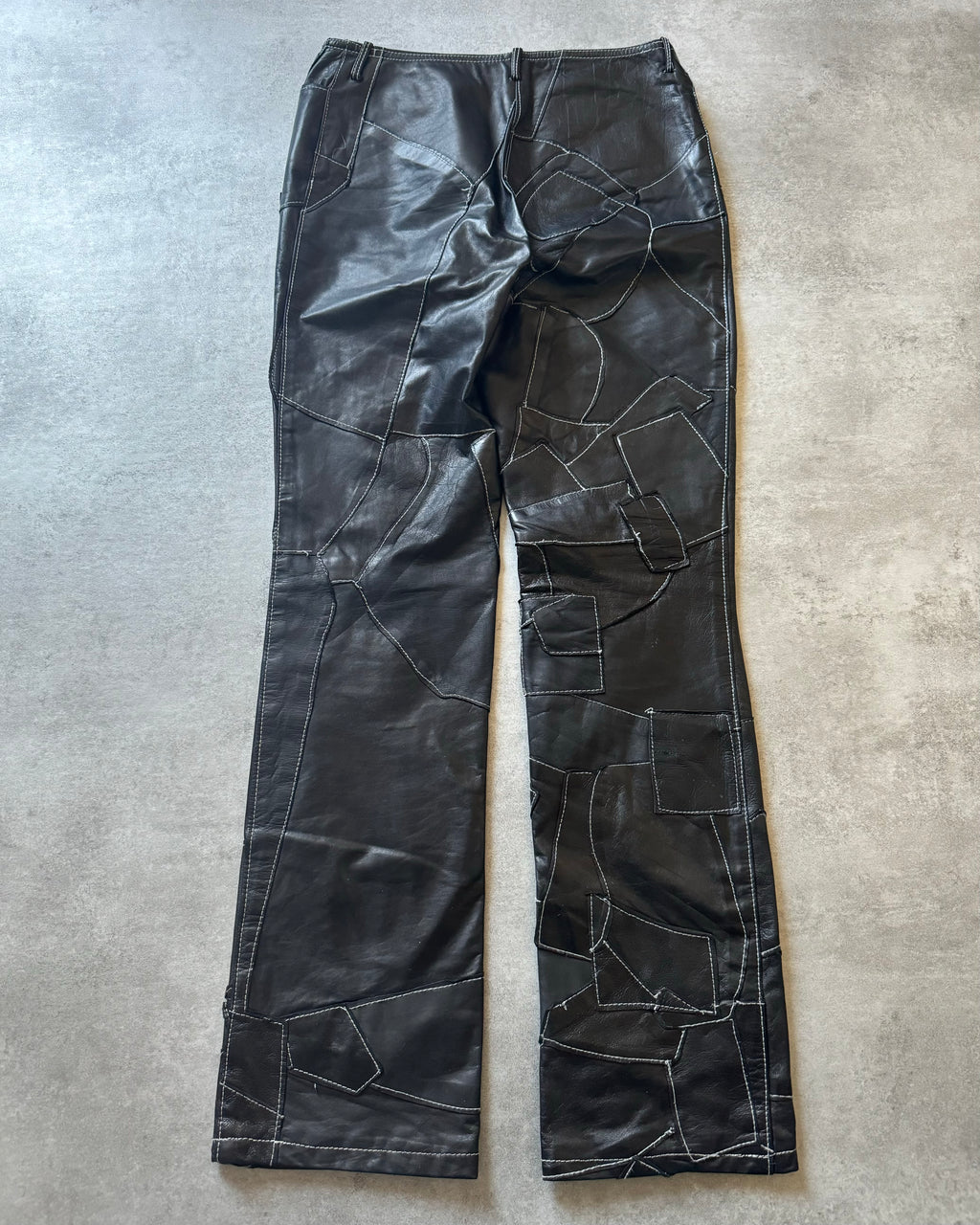 2000s Plein Sud Black Leather Patchwork Pants (S)