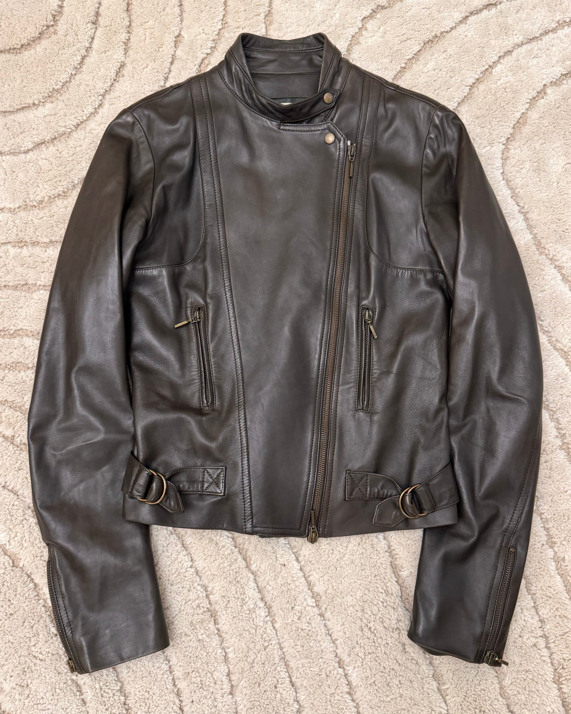 2000s Plein Sud Utility Deep Brown Leather Jacket in XS/S size.