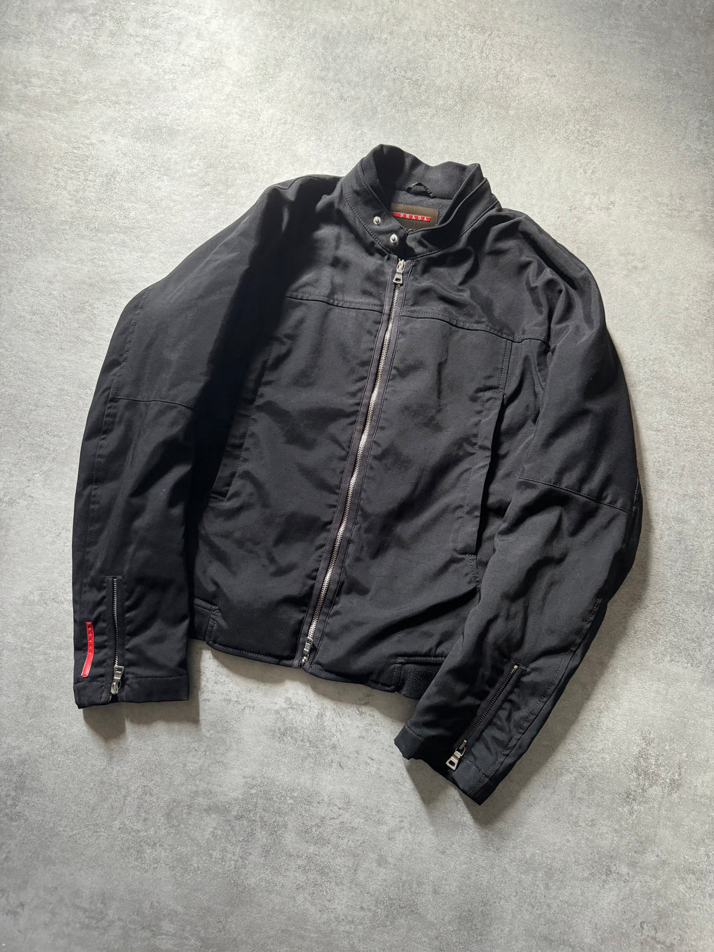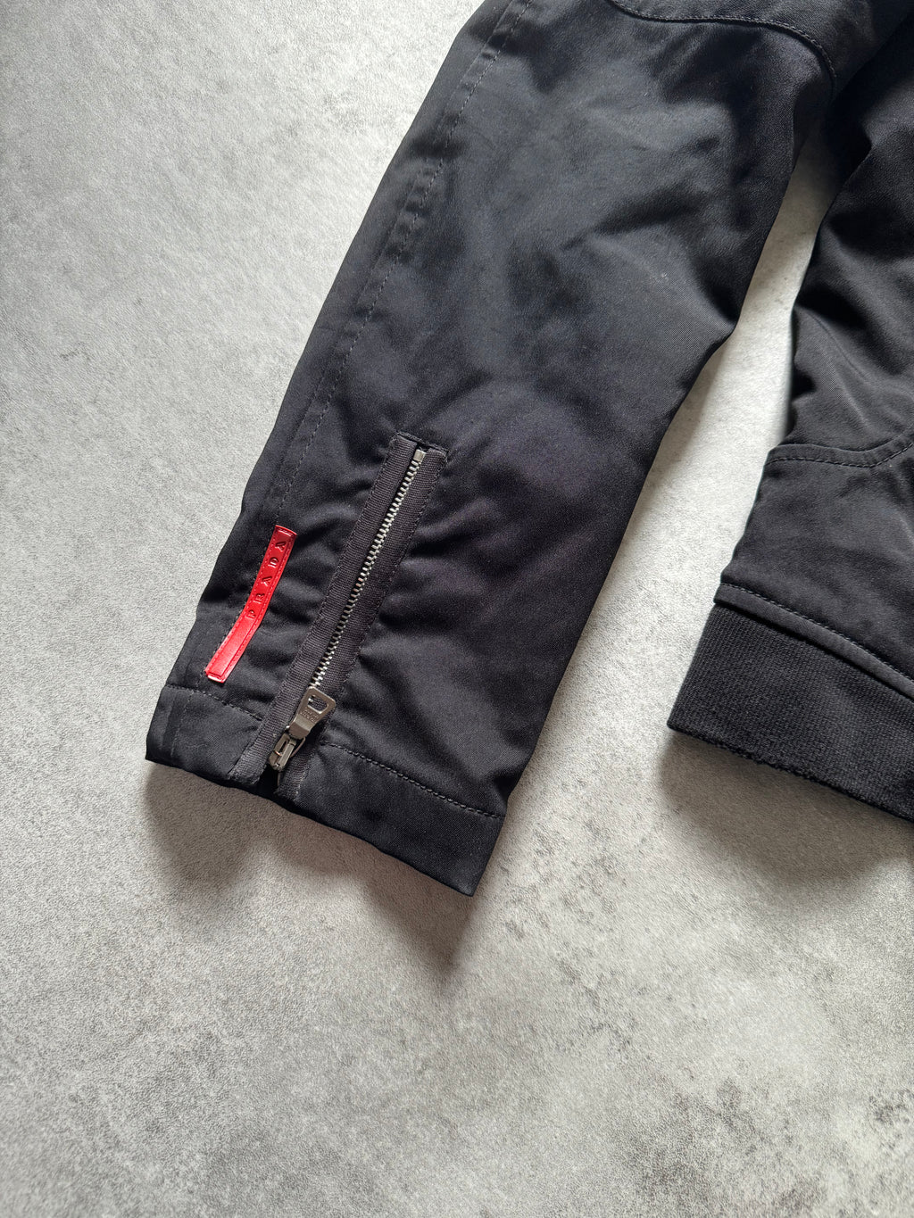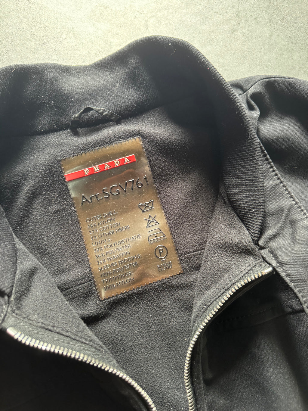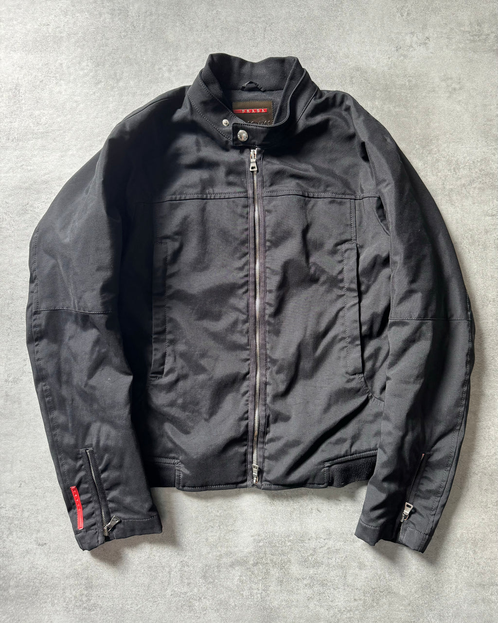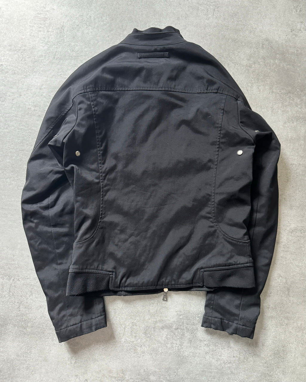Introducing the 2000s Prada Light Black Tactical Bomber Jacket: a sleek and versatile piece that blends urban functionality with high-fashion sophistication. Crafted with meticulous attention to detail, this jacket reflects Prada's commitment to innovative design and quality craftsmanship. Made with the best RiRi zippers.