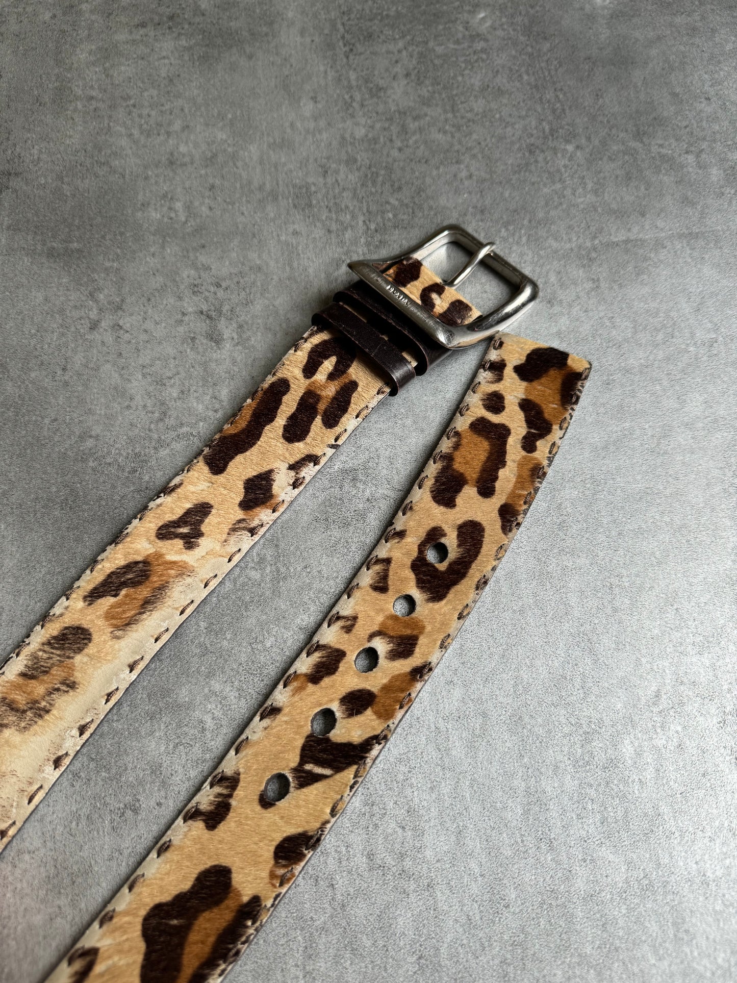 2000s Prada Pony Hair Fur Leopard Belt