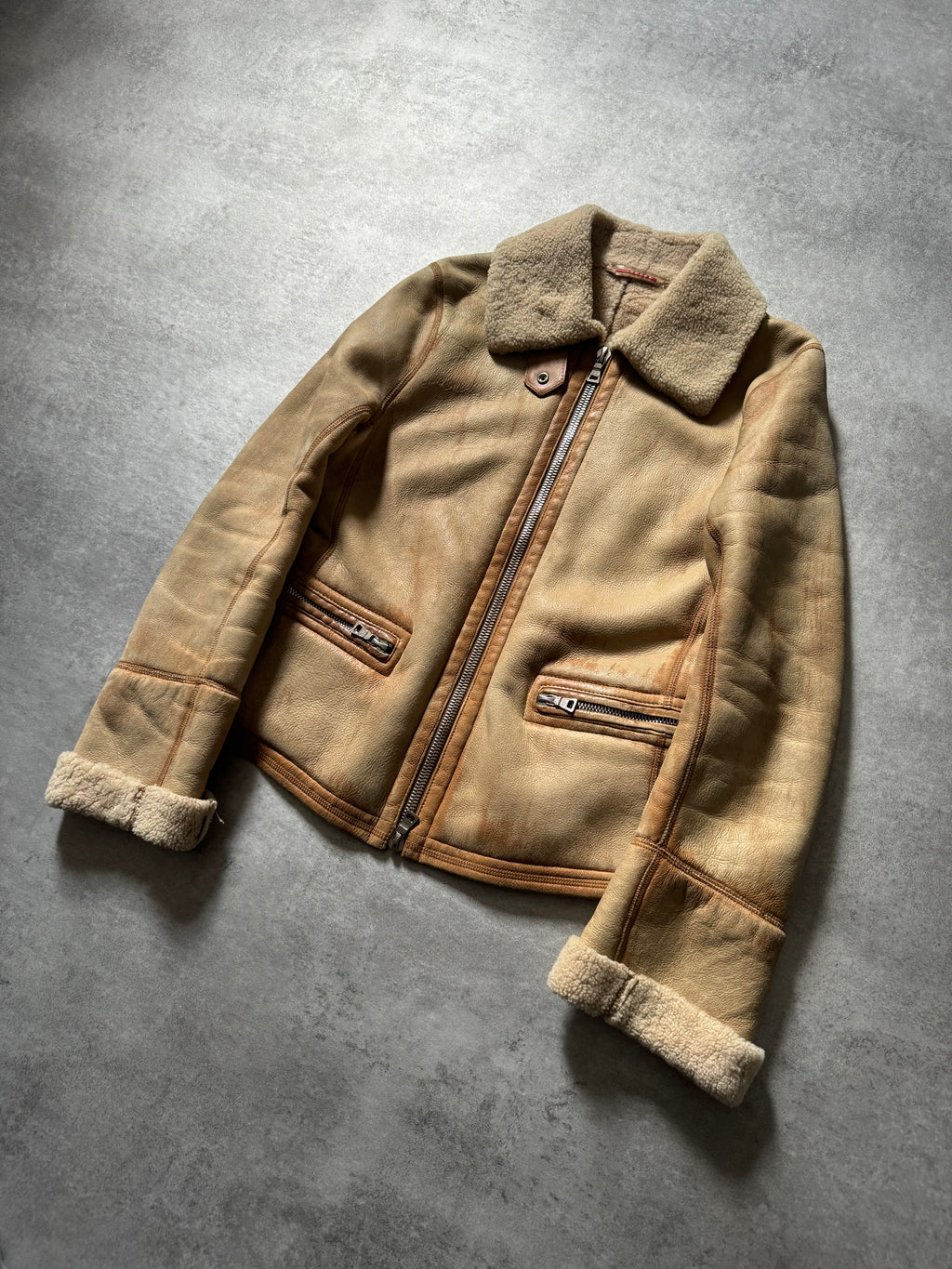 2000s Prada Premium Camel Shearling Leather Jacket (XS)