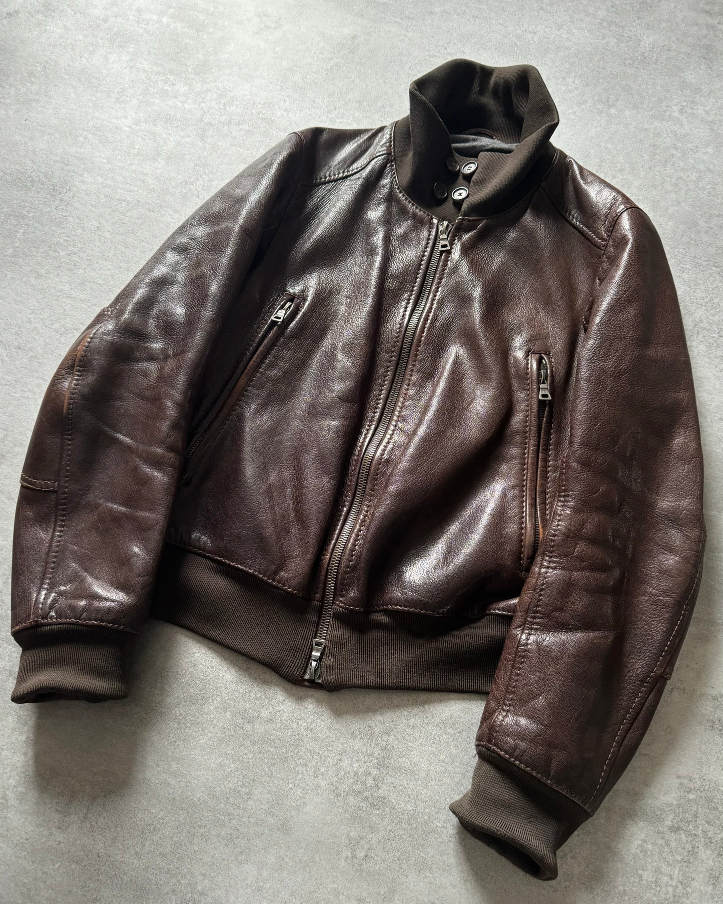 2000s Prada Signature Elbow Paded Leather Jacket
