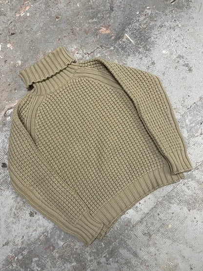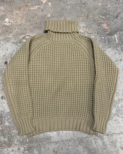 Made from high-quality wool, it offers exceptional warmth and softness, making it an ideal layering piece for any wardrobe. The classic turtleneck silhouette is elegantly versatile, perfect for both casual outings and polished settings. Subtle ribbing adds texture, enhancing its understated yet refined look. In good condition. Marked size L. Fits men S/M. Model is 181 cm.