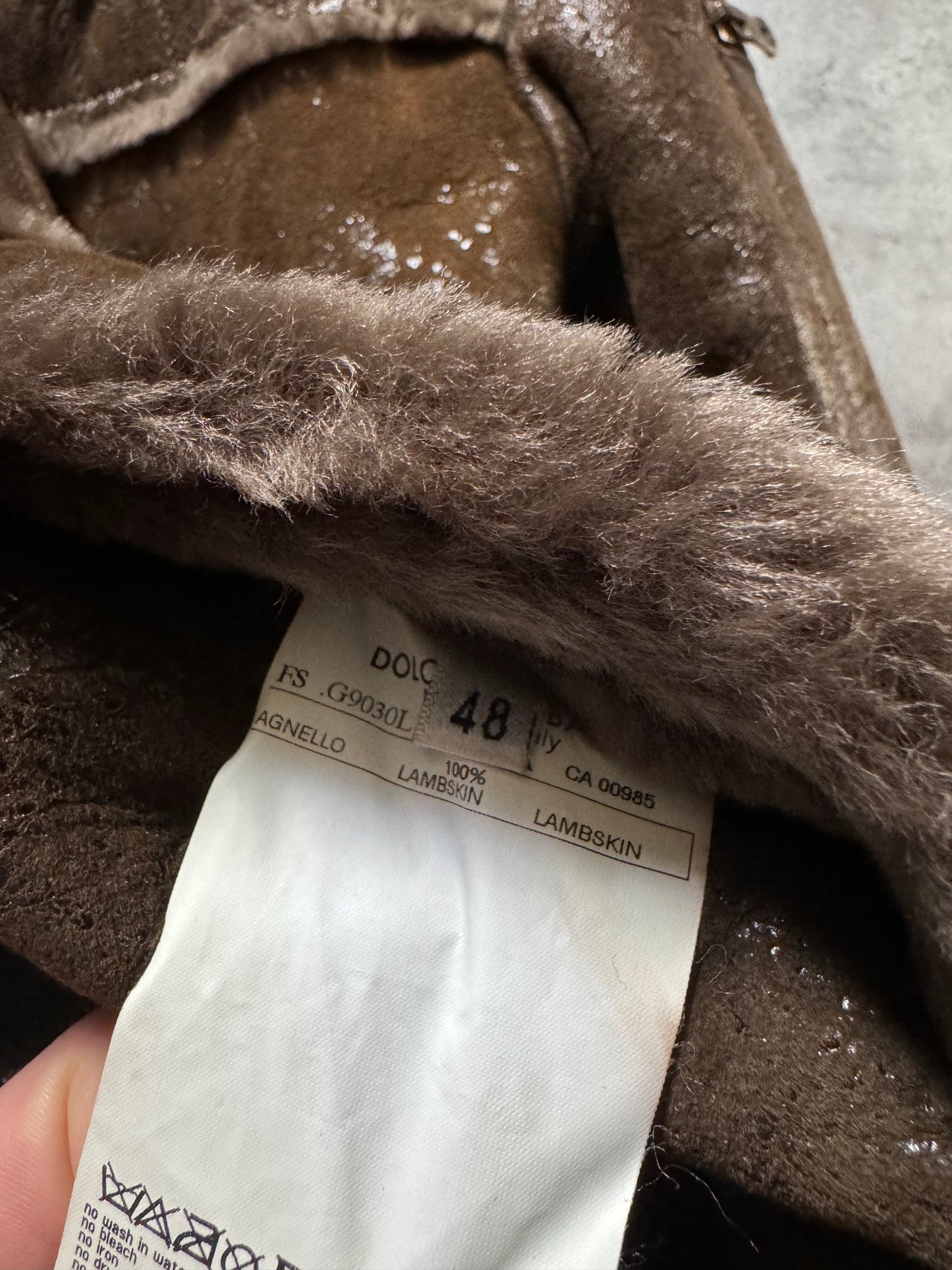 2010s Dolce & Gabbana Rabbit Brown Lamb Leather Cristal Jacket