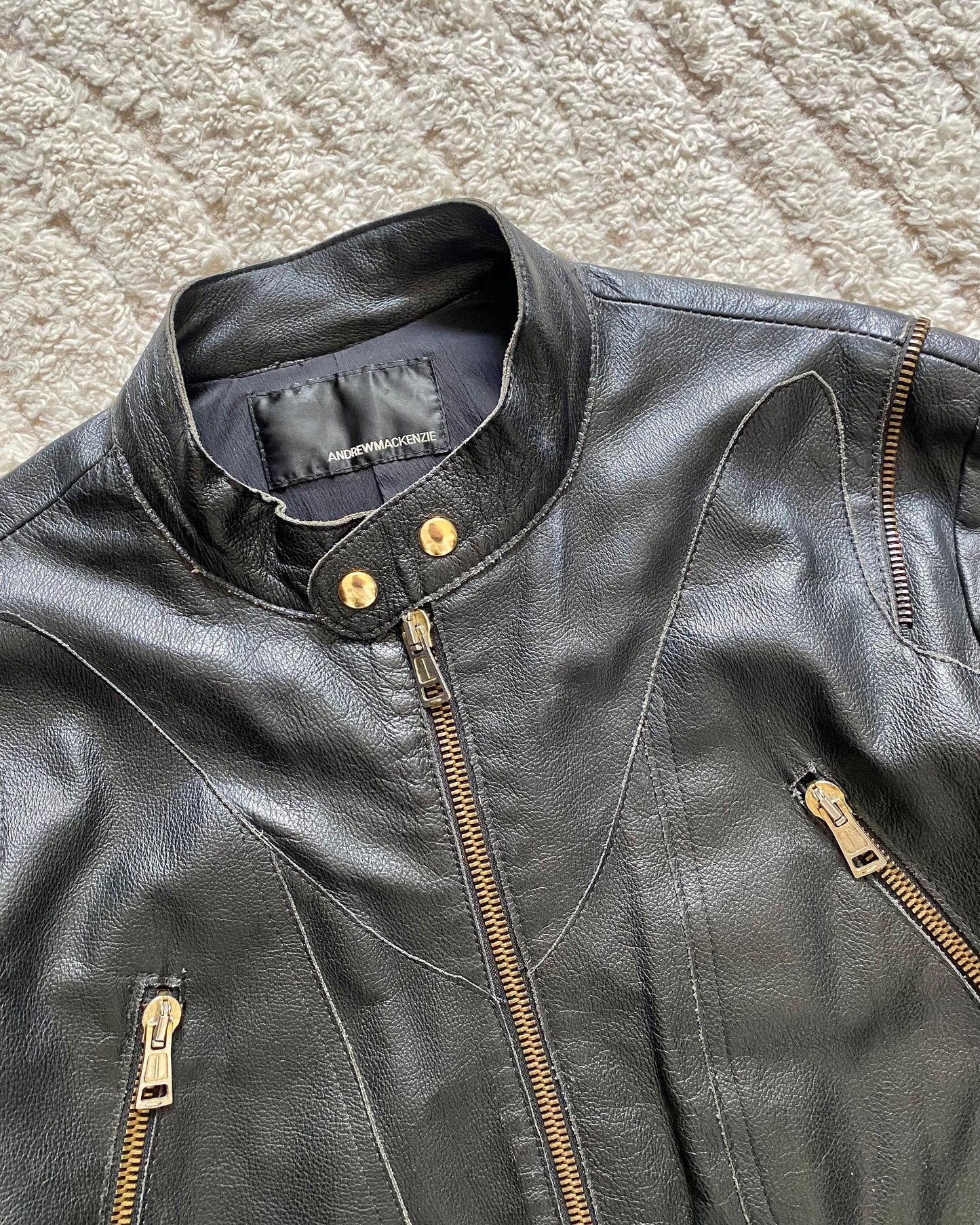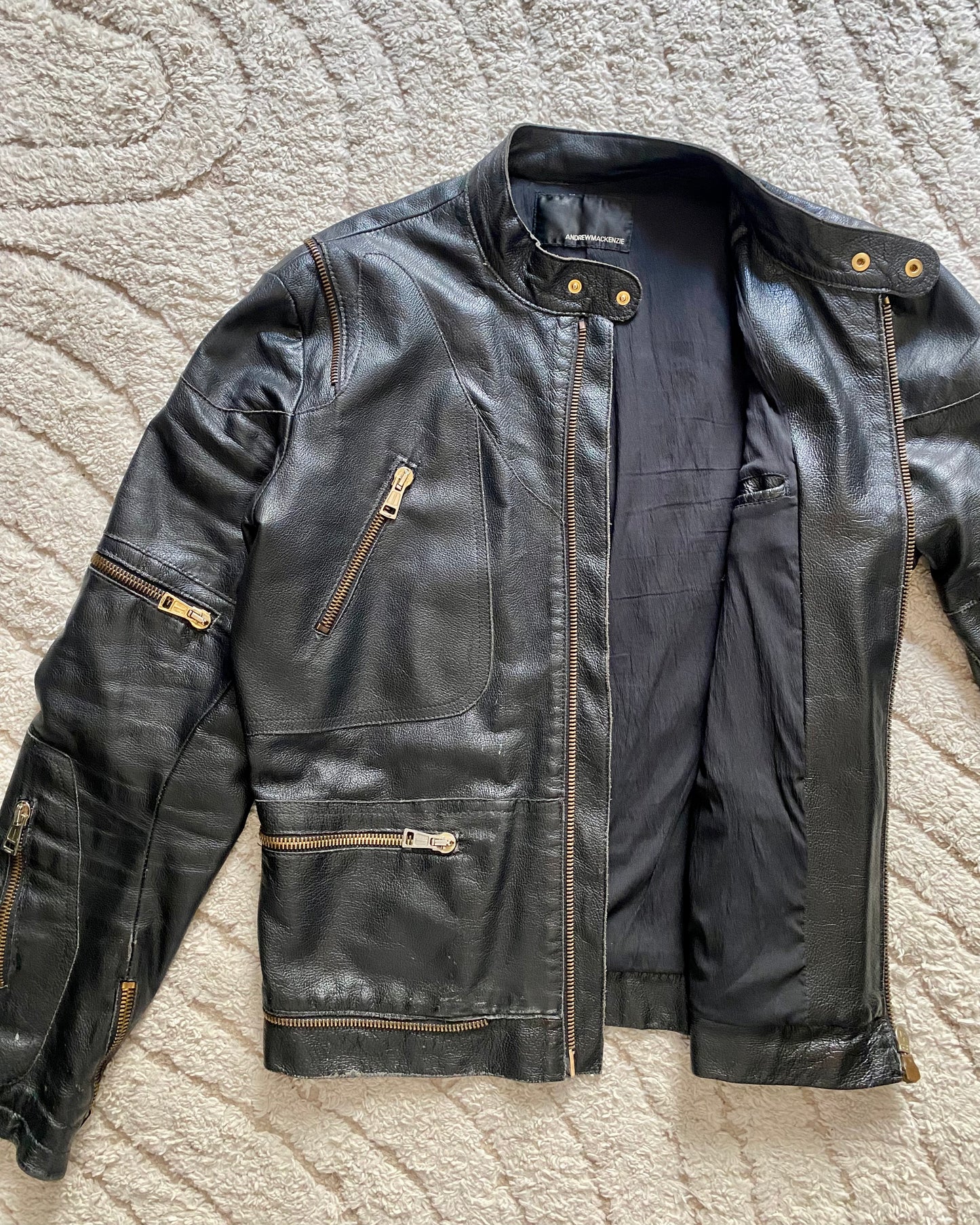 90s Andrew Mackenzie Multi Zip Biker Leather Jacket (M)