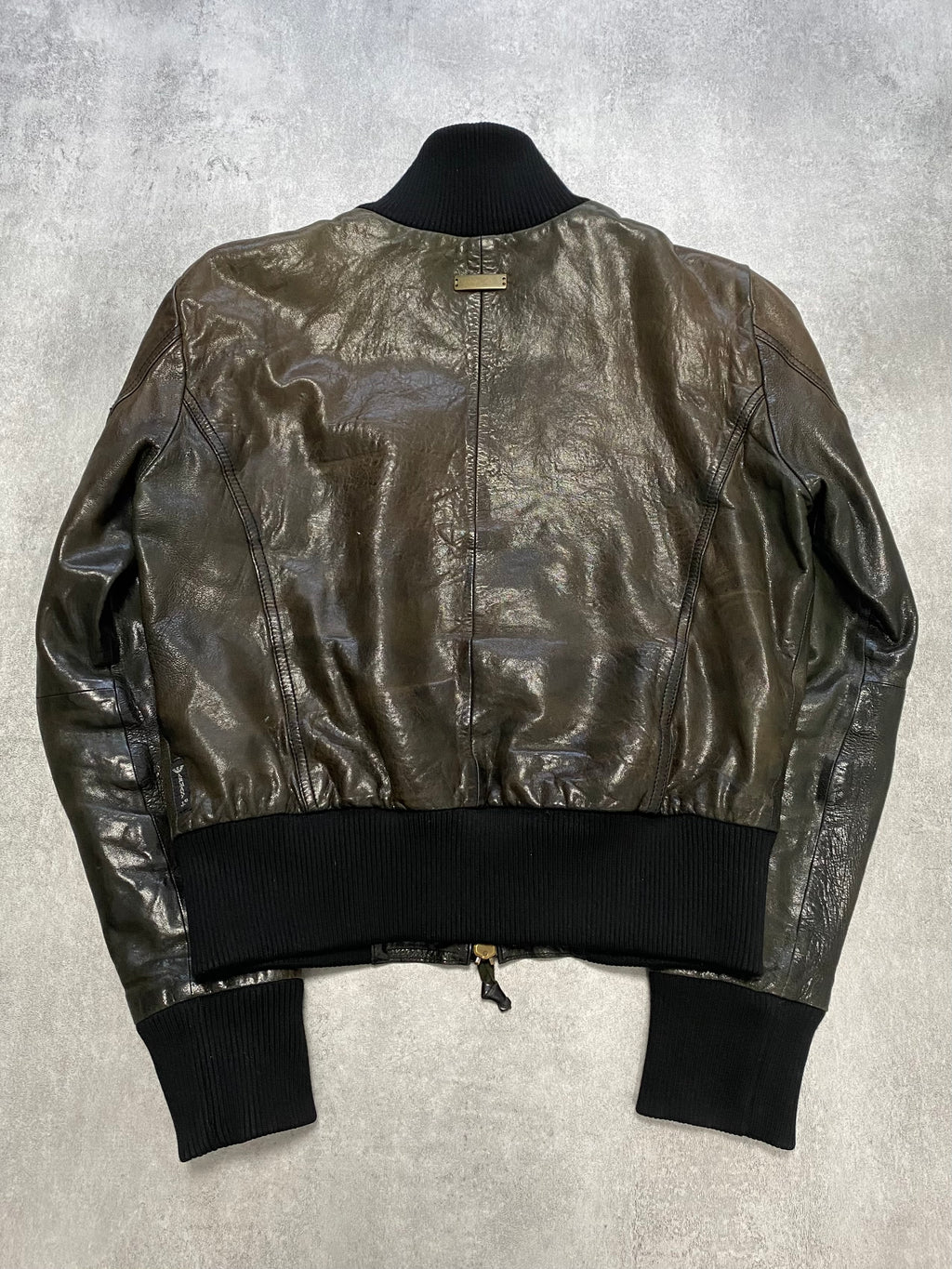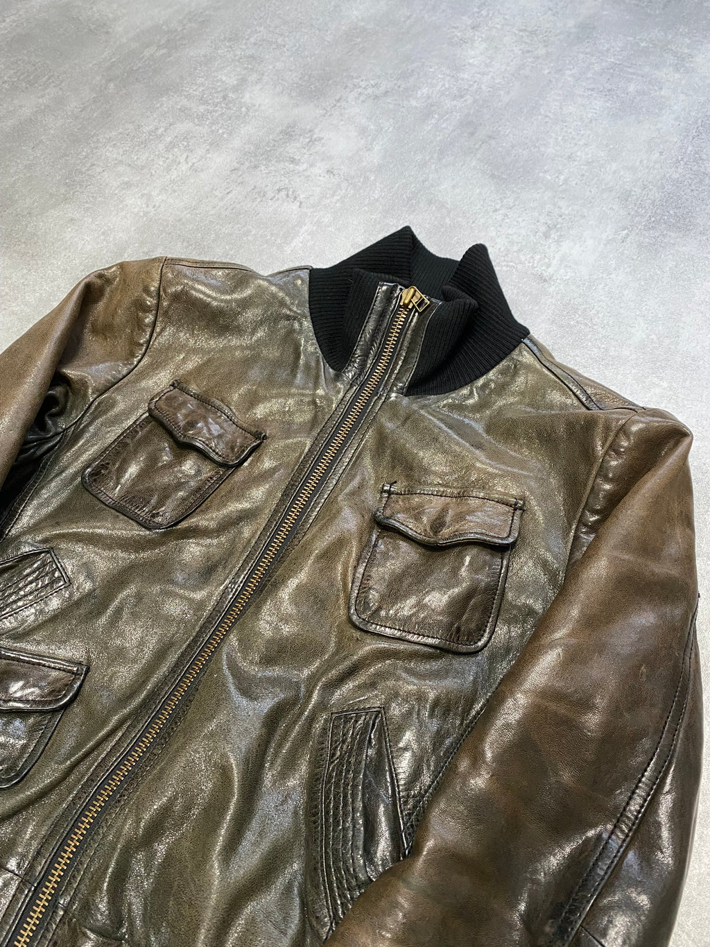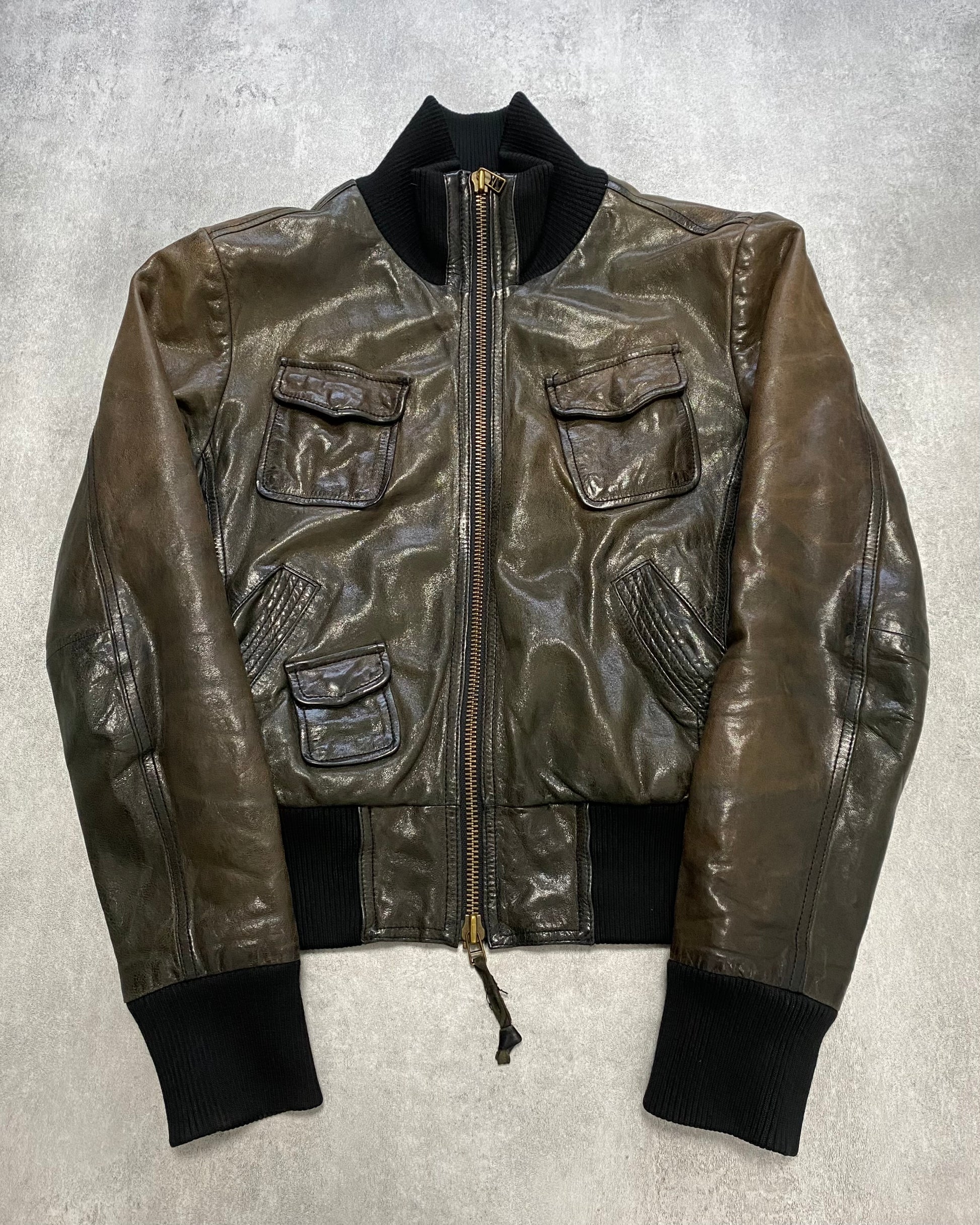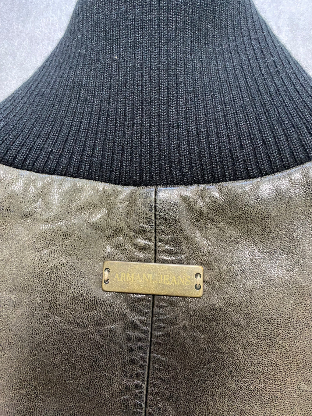 This Armani Leather Jacket features front multi-pocket and an unique color. Size 44 Hand-measured with the garment laid flat.