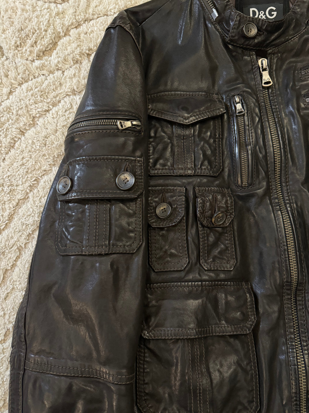 AW04 Dolce & Gabbana Army Multi-Pocket Leather Jacket (M)