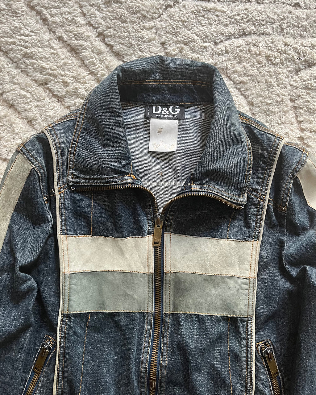 AW04 Dolce & Gabbana racing leather denim jacket (XS)
