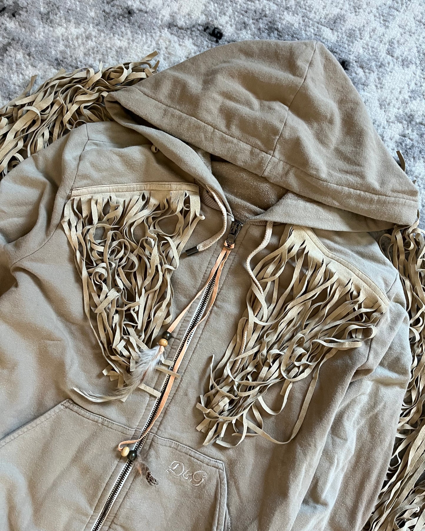 Step into the world of rare and unique fashion with the AW10 Dolce & Gabbana Beige Fringe Sweater, a piece that beautifully blends Indian-inspired design with Italian craftsmanship.