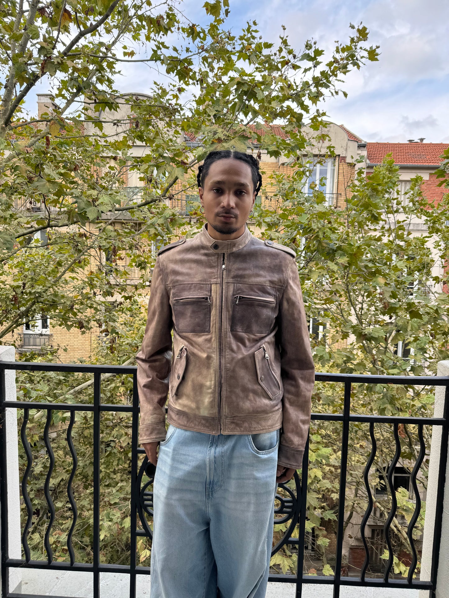 The “eroded stone” effect refers to a unique treatment applied to the leather, creating a worn-in, weathered appearance that resembles the natural patina of aged stone. This effect adds a vintage and rugged charm to the jacket.