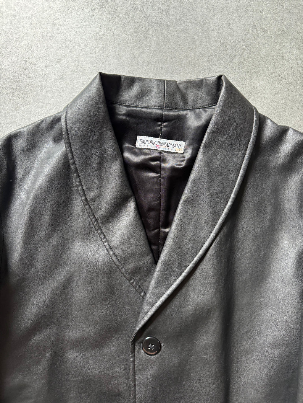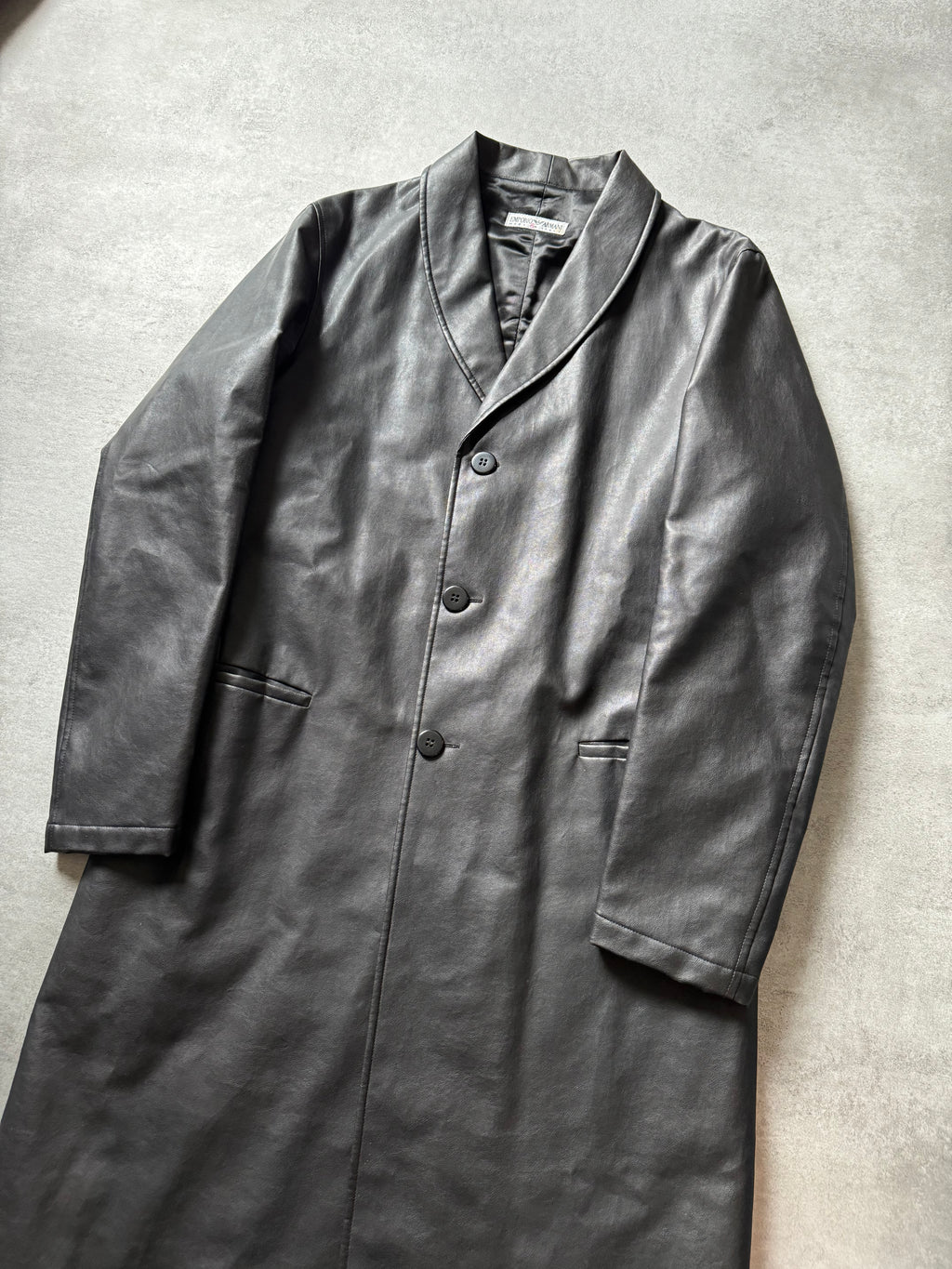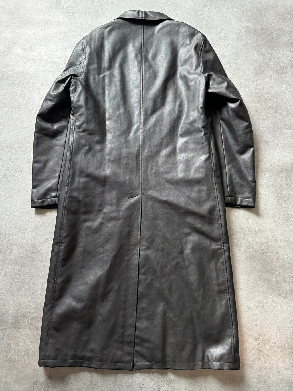 AW1996 Emporio Armani Black Long Trench Leather Jacket (L) - 1