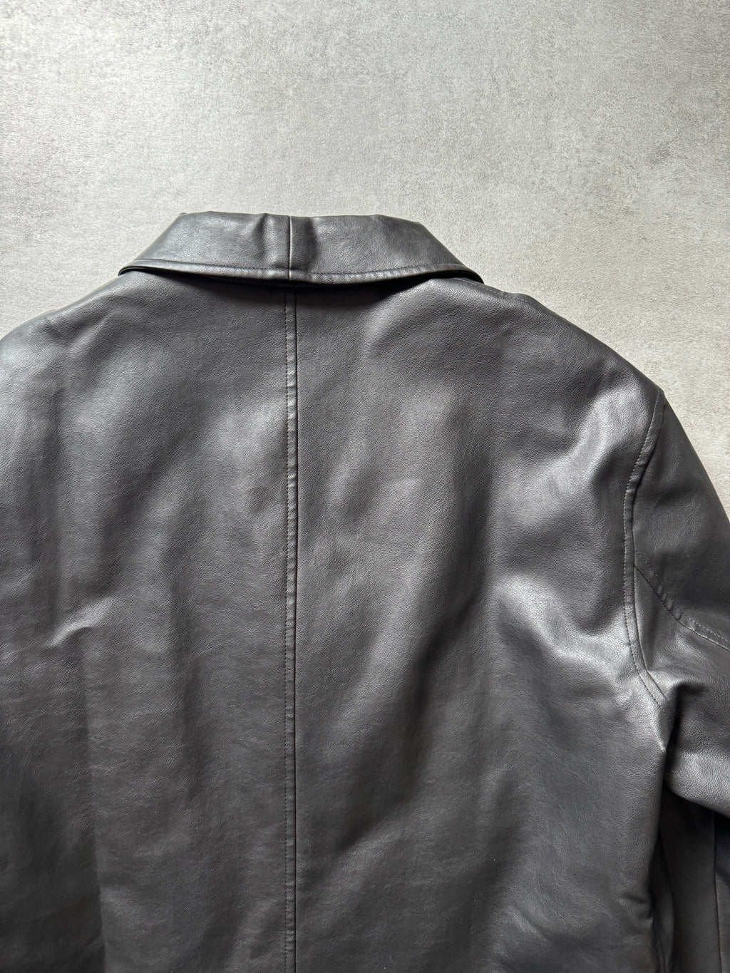 The AW1996 Emporio Armani Black Long Trench Leather Jacket epitomizes classic luxury and timeless style. This iconic piece from Emporio Armani's 1996 autumn/winter collection showcases the brand's dedication to sophisticated design and superior craftsmanship. The interior is lined with a smooth, high-quality fabric, enhancing comfort and wearability. The lining also provides an extra layer of warmth, making it suitable for autumn and winter. Such a rare & fantastic jacket. Still in a great overall condition.