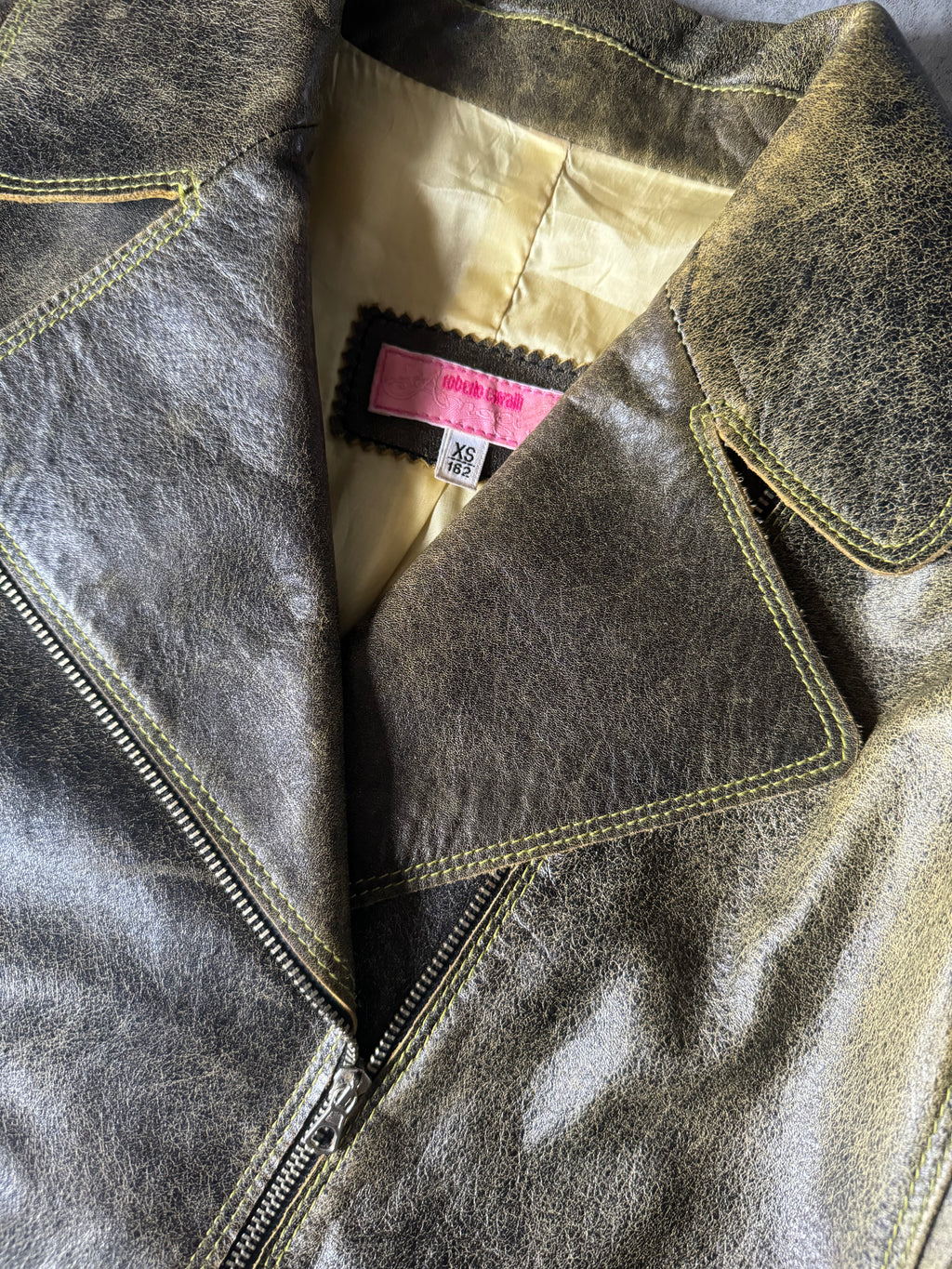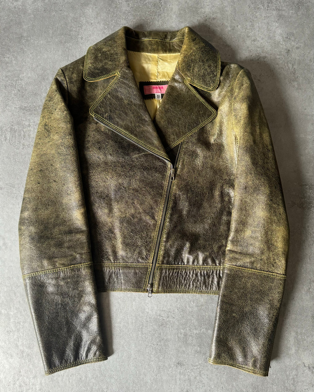 AW2001 Roberto Cavalli Yellow Faded Biker Jacket (XS)