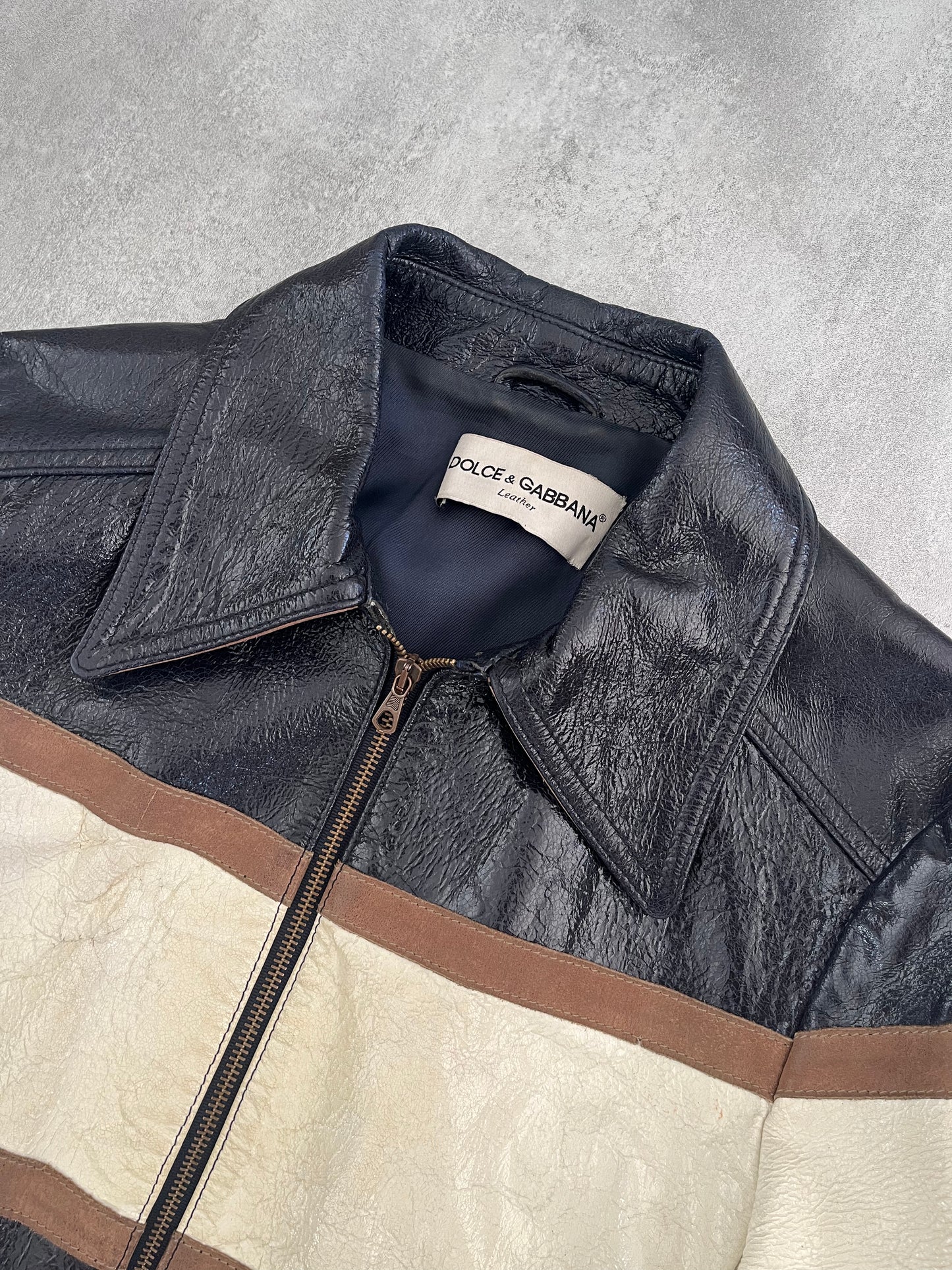 AW2002 Dolce & Gabbana Satin Pacific Leather Biker Jacket (M)