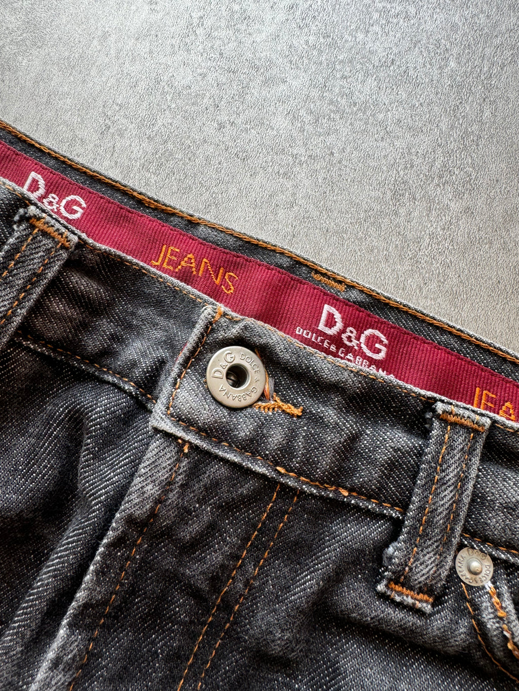 Iconic item from the reference year of Dolce & Gabbana. The spotlight of this denim pants is on the strategically placed zips that crisscross and contour, creating an avant-garde symphony of lines. Each zipper is not just a functional detail; it's a design element that adds an edge to the classic denim canvas. Still in a great overall condition