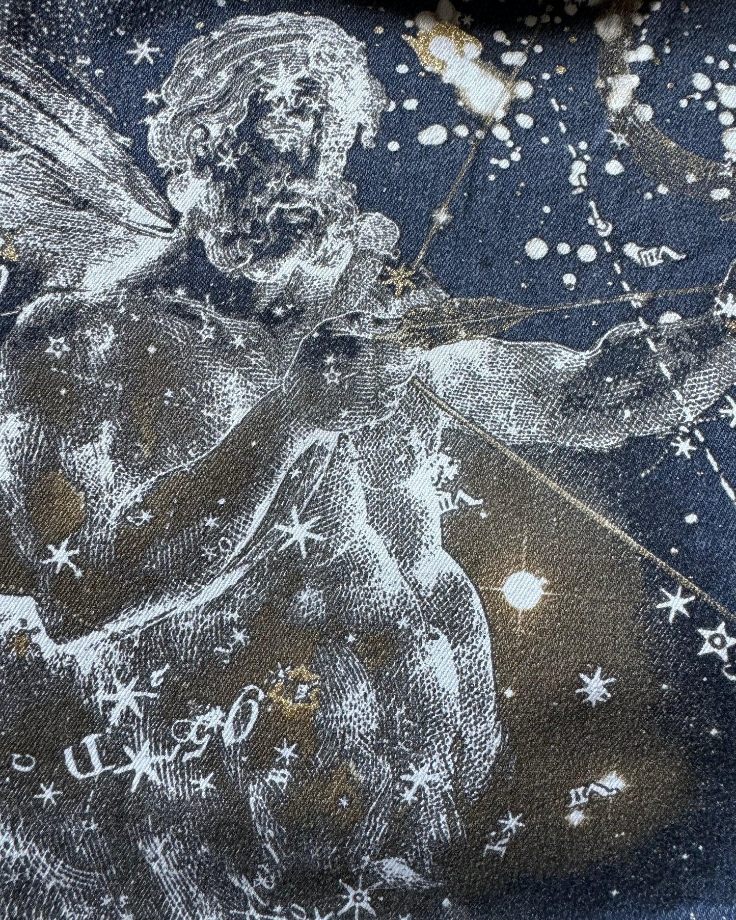 AW2003 Roberto Cavalli Zodiac Constellation Astrology Pants. The pants offer a unique and luxurious addition to any fashion-forward wardrobe, embodying the mystique and elegance that Roberto Cavalli is known for. Still in great overall condition. Waist - 36cm / Length - 100cm / Leg Opening - 20cm / Thigh - 26cm. Fits great for a slim person, unisex.