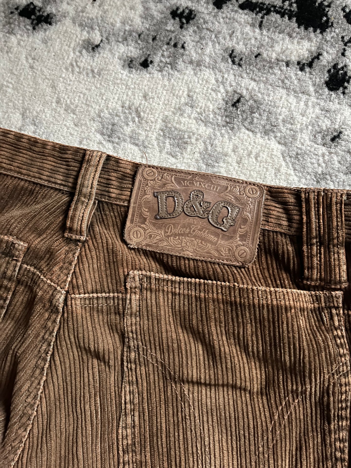 Pants from one of the most legendary collections in Dolce & Gabbana history. Made from brown velvet mainly, still in a very great condition. Please refer to measurements Waist - 43cm, Leg Opening - 22cm, Length - 94cm