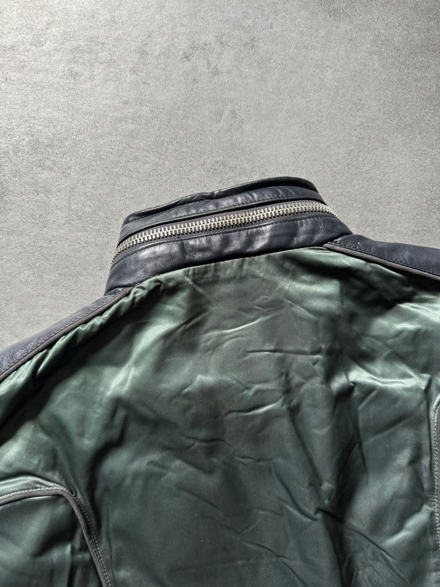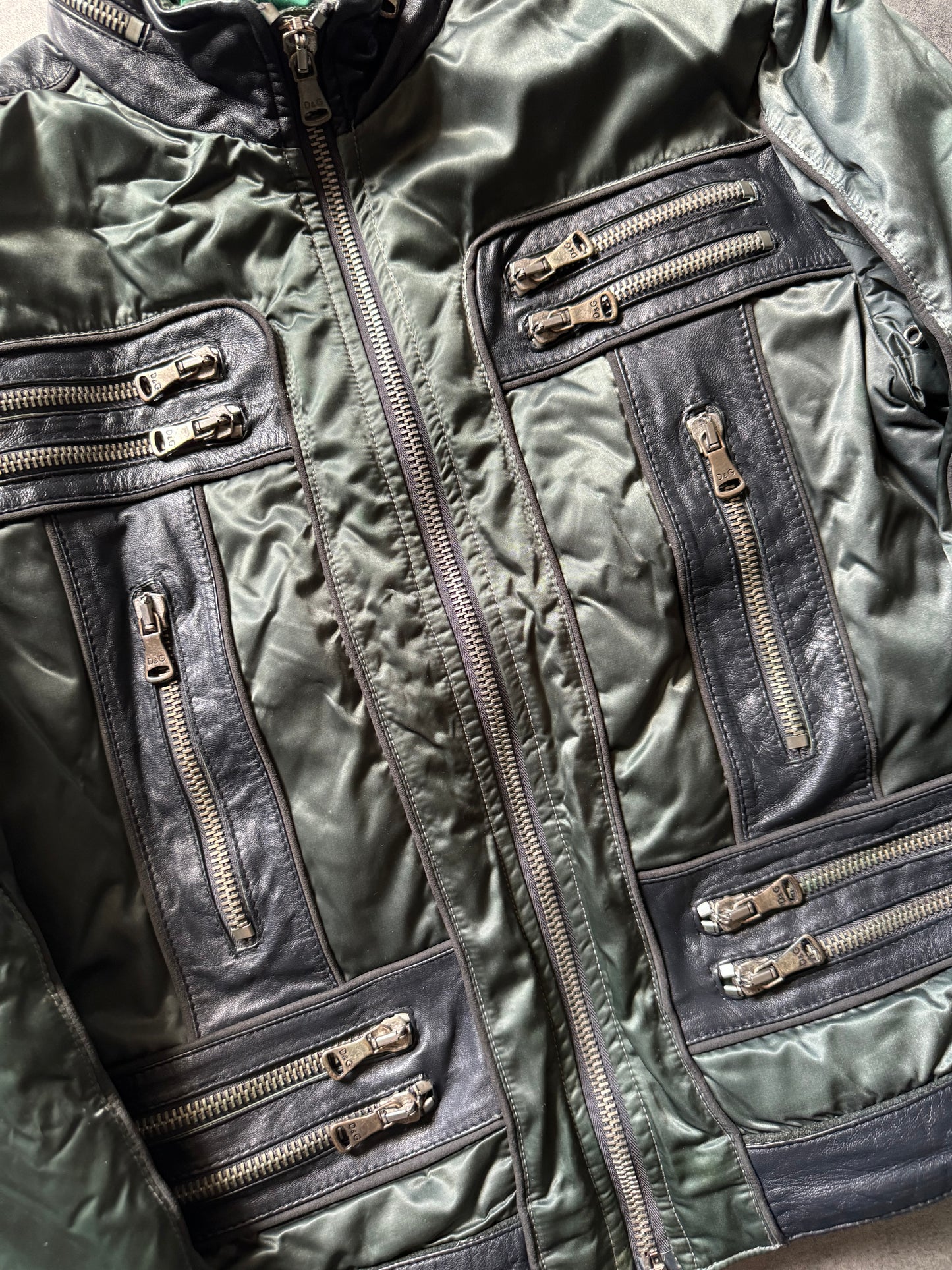 AW2007 Dolce & Gabbana Multi Zips Utility Jacket. Autumn Winter 2007 Dolce & Gabbana. The AW07 Dolce & Gabbana Utility Jacket is a unique and stylish piece of clothing that combines functionality with fashion. This jacket is made from a blend of high-quality nylon and leather materials, providing both durability and a luxurious feel. The jacket features a sleek and modern design, with a slim fit that flatters the wearer's silhouette. The front of the jacket has multiple pockets with snap closures, perfect for storing small items or keeping your hands warm on chilly days. The collar is lined with a soft, comfortable material that will keep you cozy during the colder months. RUNWAY ITEM. Still in a great overall condition. Marked as size 50 - Medium.