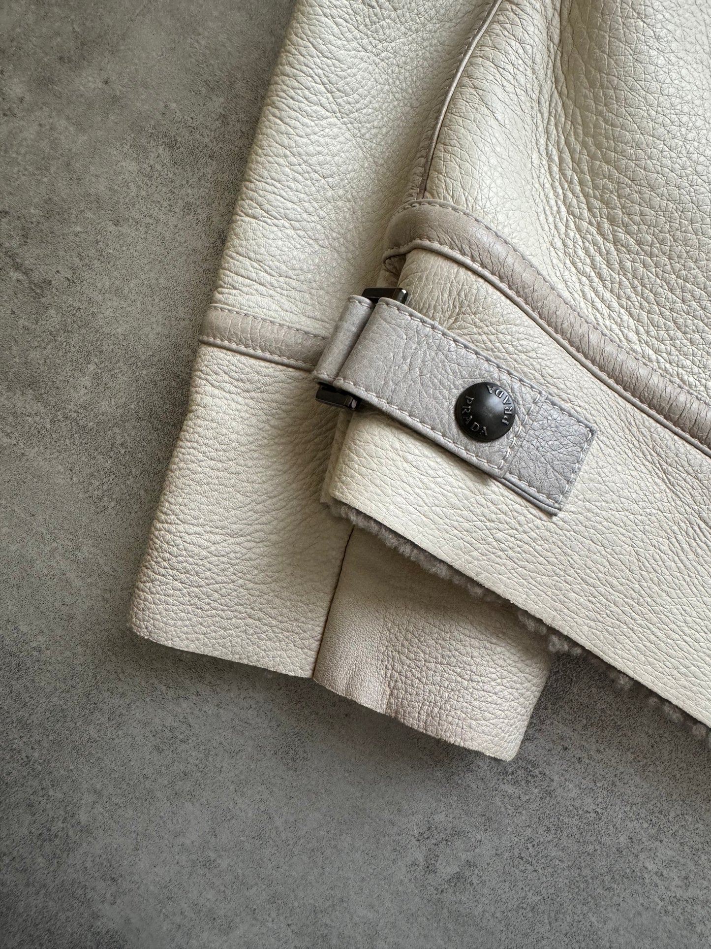 AW2007 Prada White Shearling Cozy Leather Jacket (M) - 1