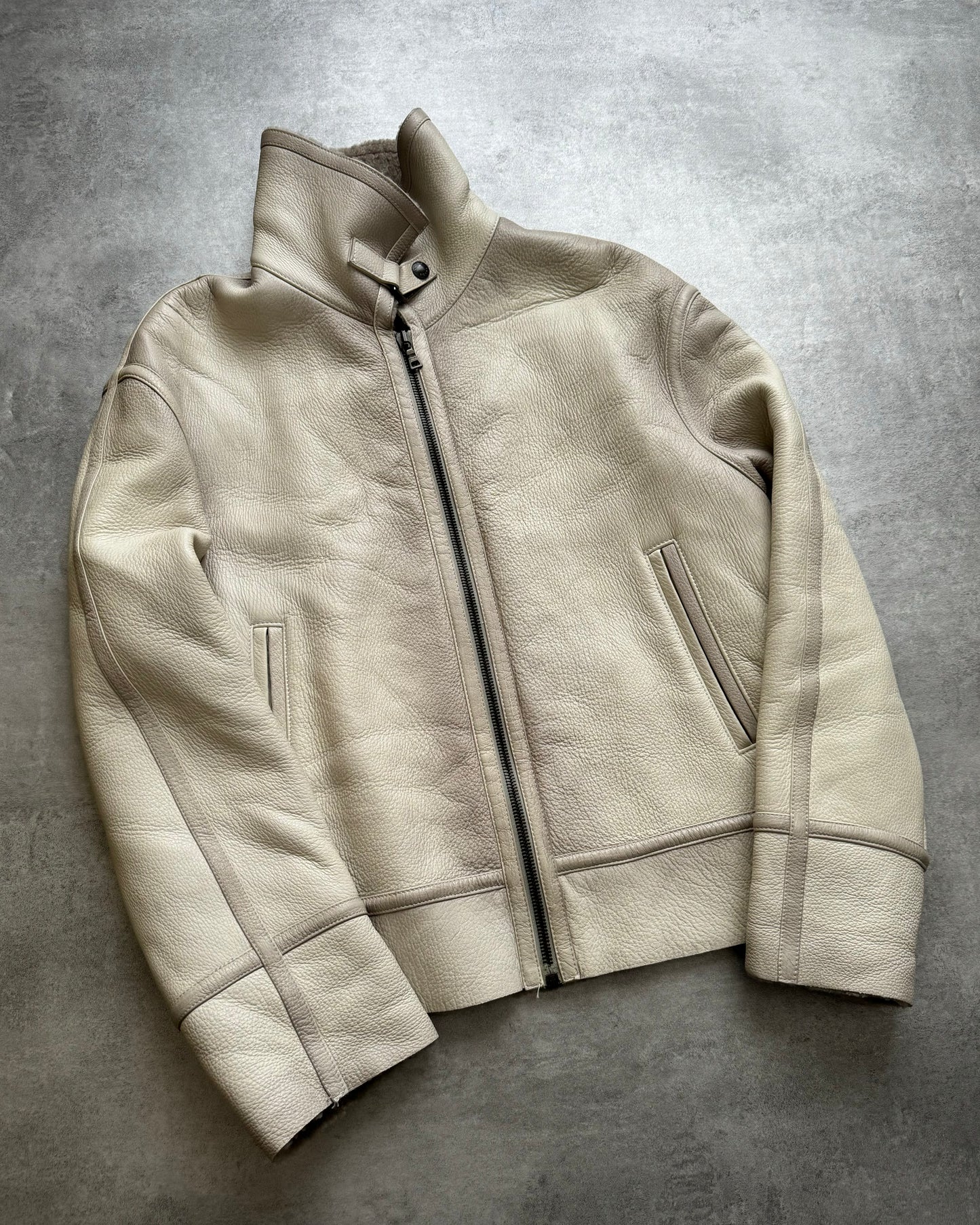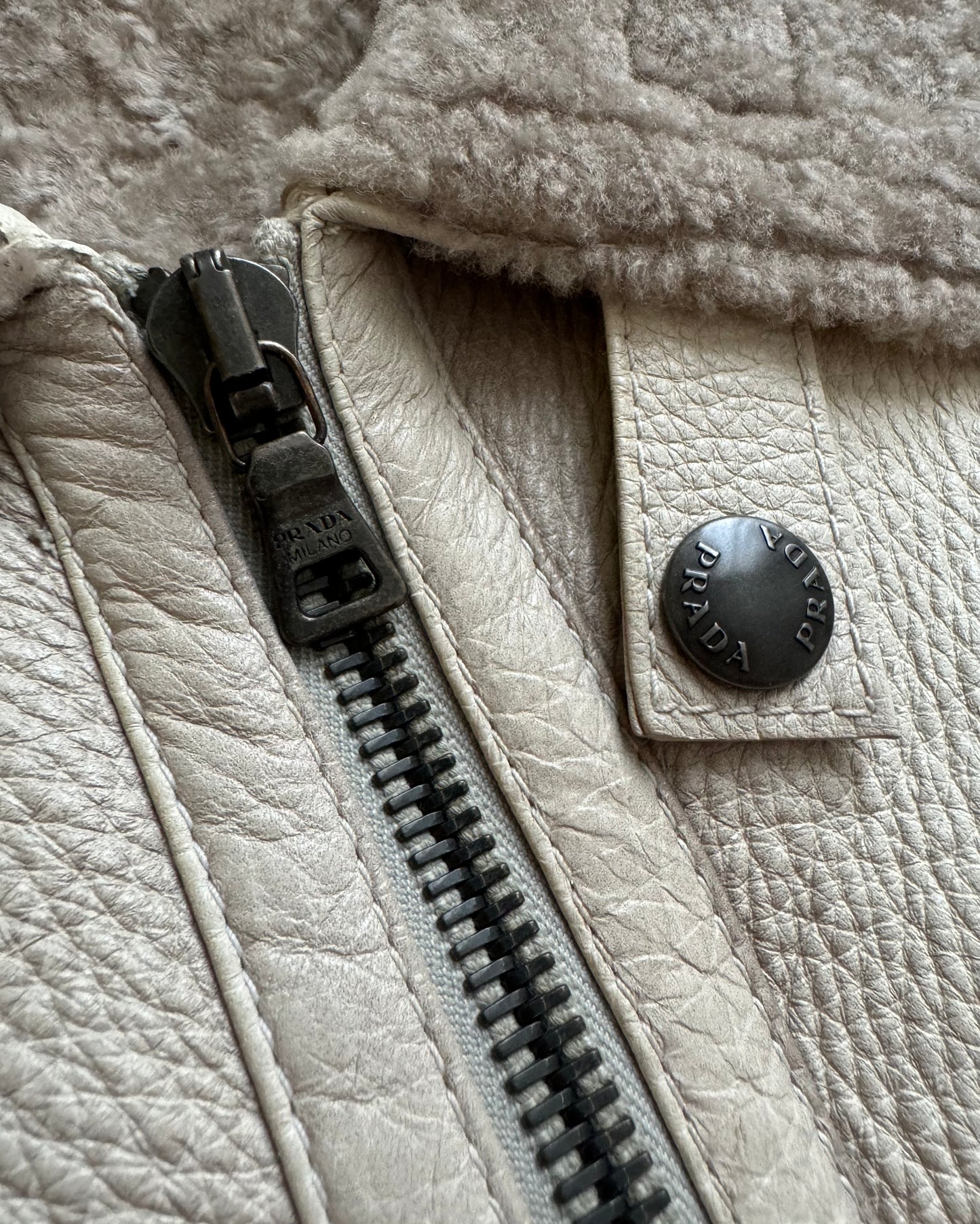 AW2007 Prada White Shearling Cozy Leather Jacket