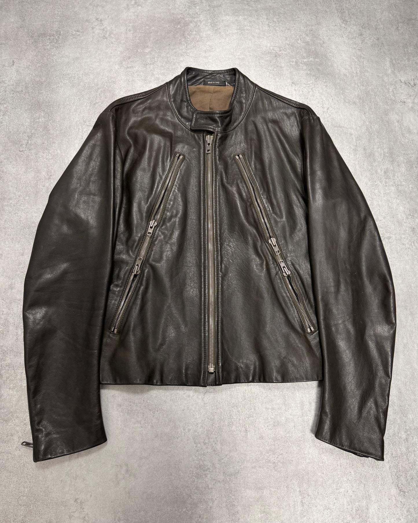 AW2011 Maison Margiela Dark Brown 5-Zip Biker Leather Jacket (S)