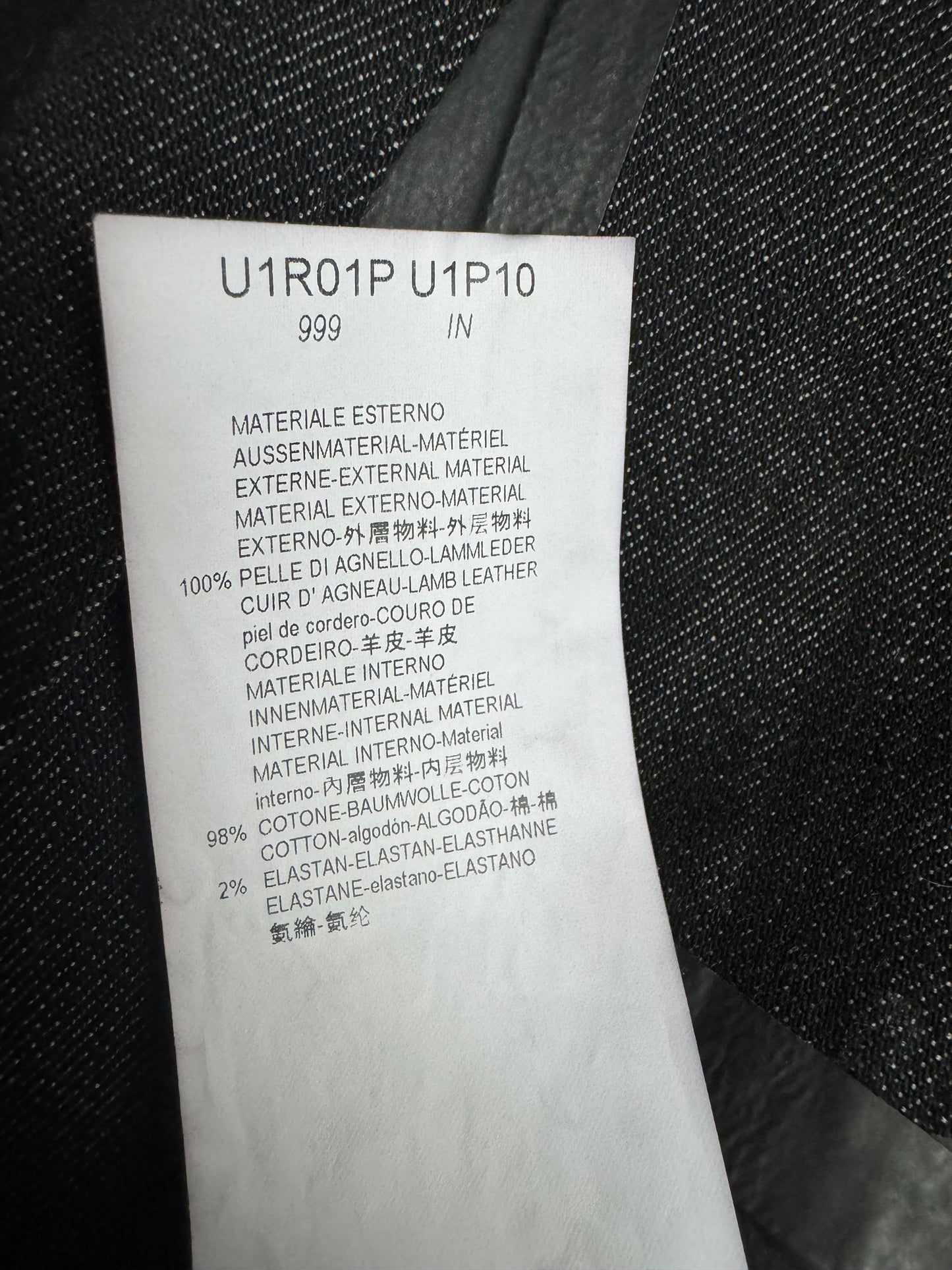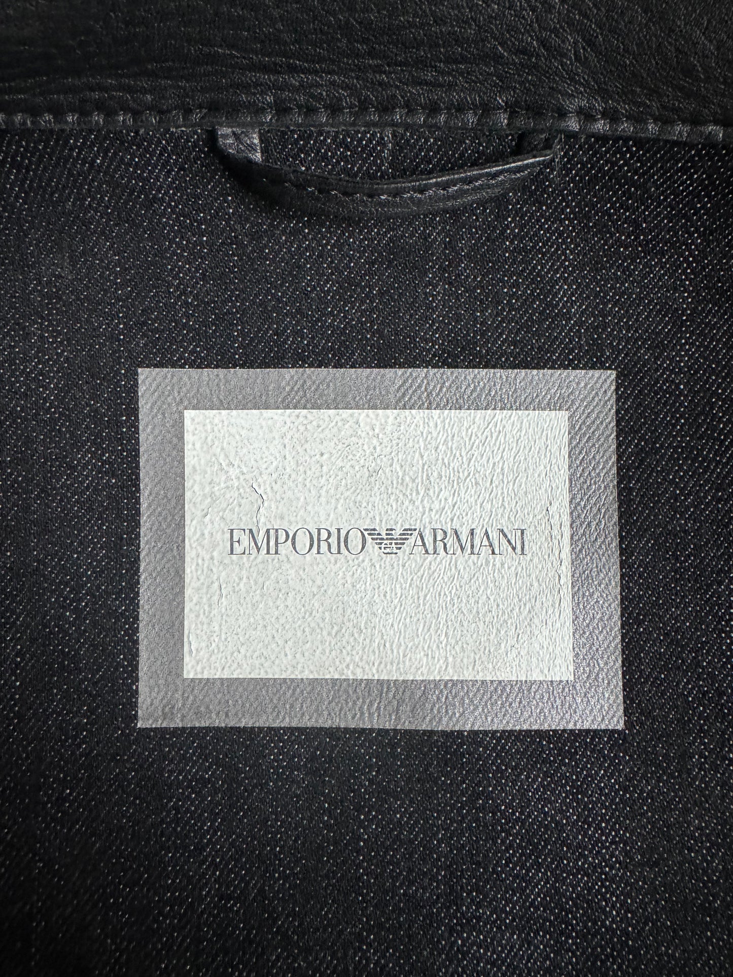 AW2016 Emporio Armani Distressed Black Minimalist Leather Jacket is a bold, contemporary piece that blends a minimalist design with rugged, distressed details. Part of Emporio Armani's Autumn/Winter 2016 collection, this jacket captures both sophistication and an edgy attitude, making it a timeless staple for any wardrobe. Expect a tailored fit that contours to the body for a flattering silhouette, with enough room to layer comfortably. The minimalist approach makes it ideal for versatile styling, whether over a casual outfit or dressed up for a night out. Still in excellent condition both inside & outside. Size 54 (Large).